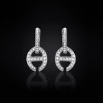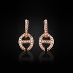 The Klaasp with Diamonds is constructed from solid 18K gold and defined by HOORSENBUHS®’ link architecture in a suspended drop form. A huggie connection supports a single open-link element, fully integrated with pavé-set diamonds across both components.