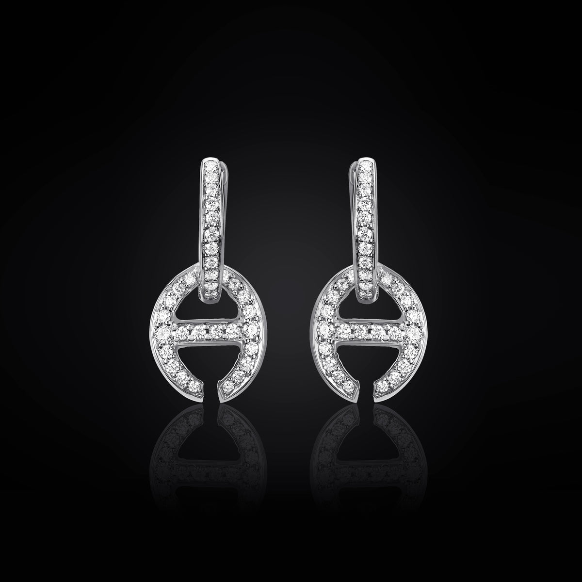 Each pair is crafted by hand and finished to HOORSENBUHS®’ exacting standards. Diamonds are set with precision to preserve clean geometry and material integrity, maintaining structural clarity throughout the hanging form.