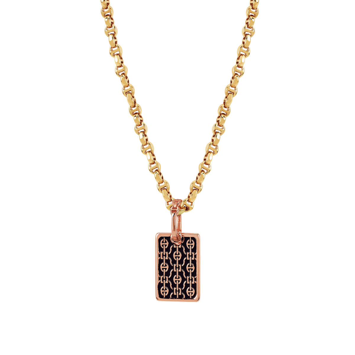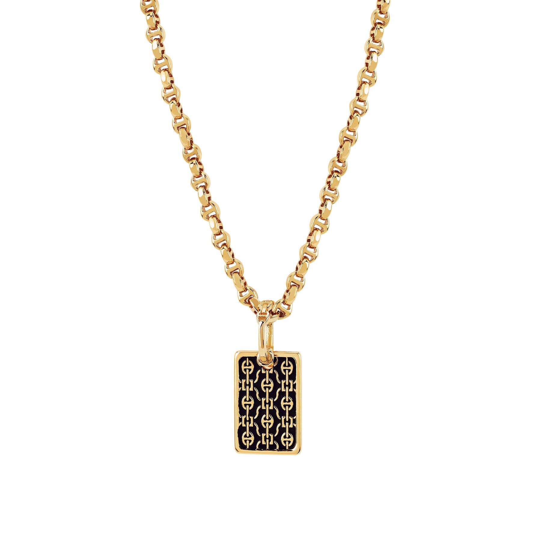 Unit price perRectangular pendant with an all-over relief Tri-link pattern. *Chain not included