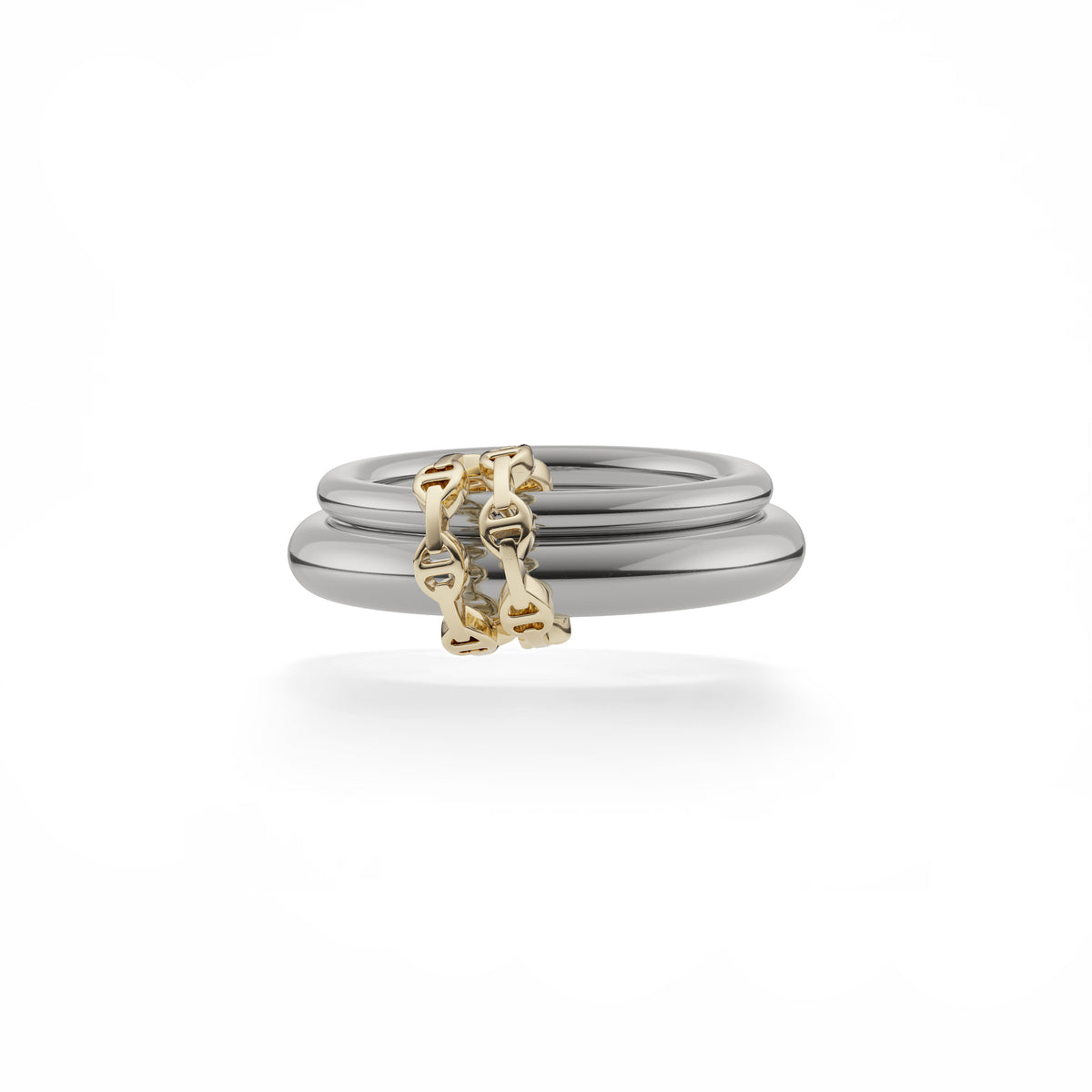 The Virgo Noir HB ring is comprised of two linked Spinelli Kilcollin bands in 18k black gold with two 18k yellow gold Hoorsenbuhs connectors.