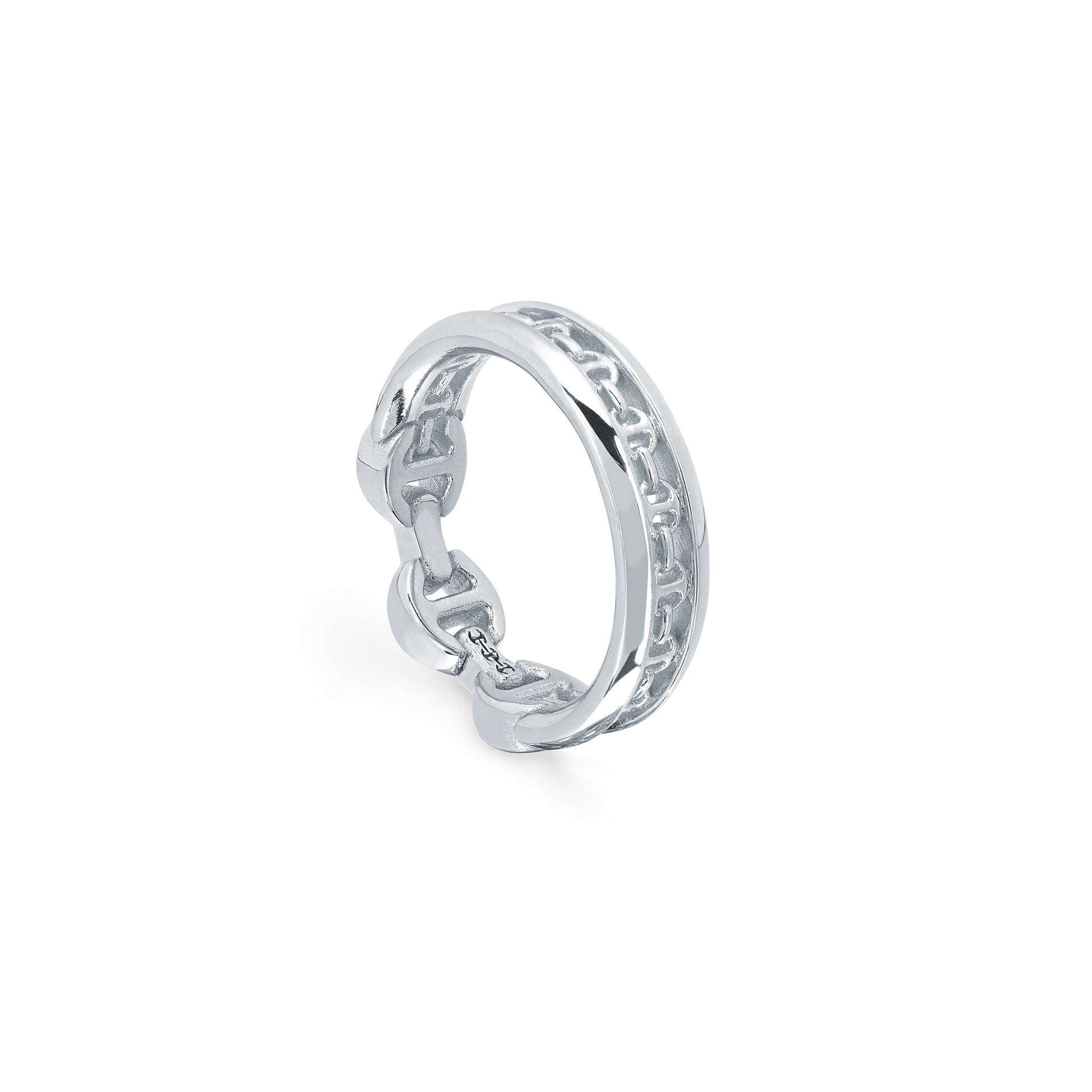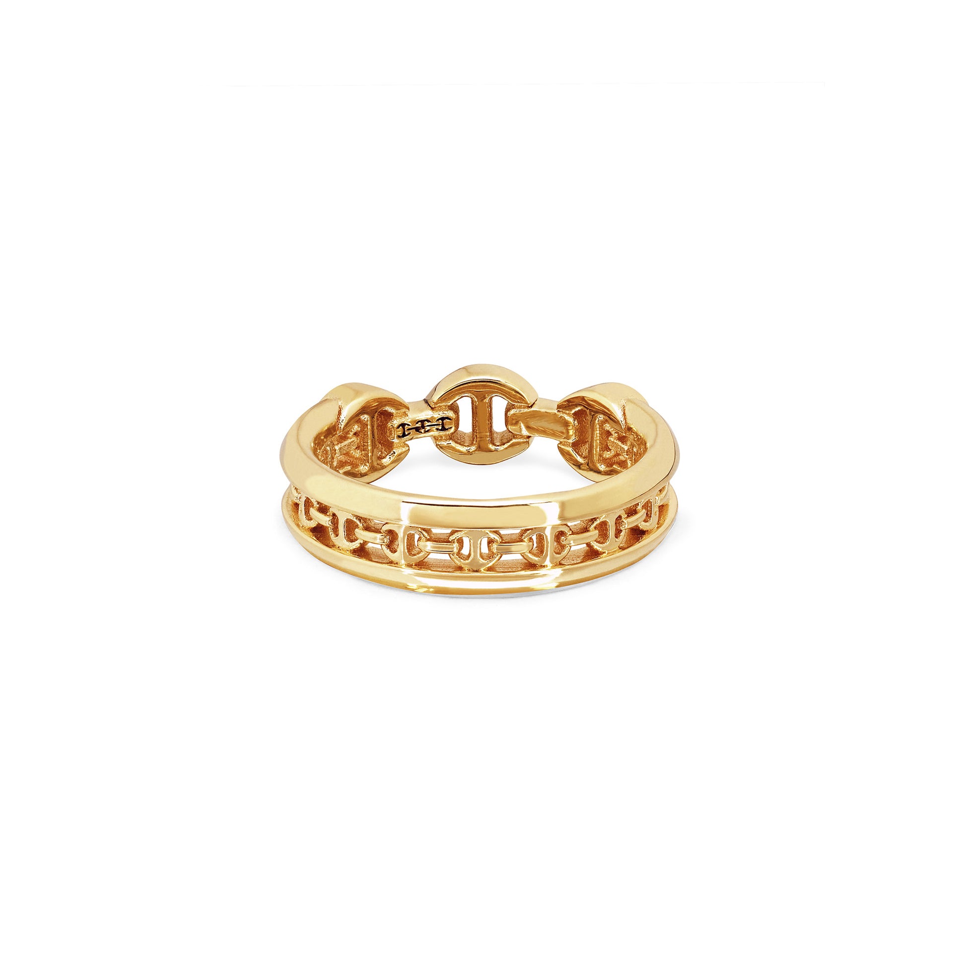 A tri-link band edged on both sides in gold with a single iconic tri-link on top.