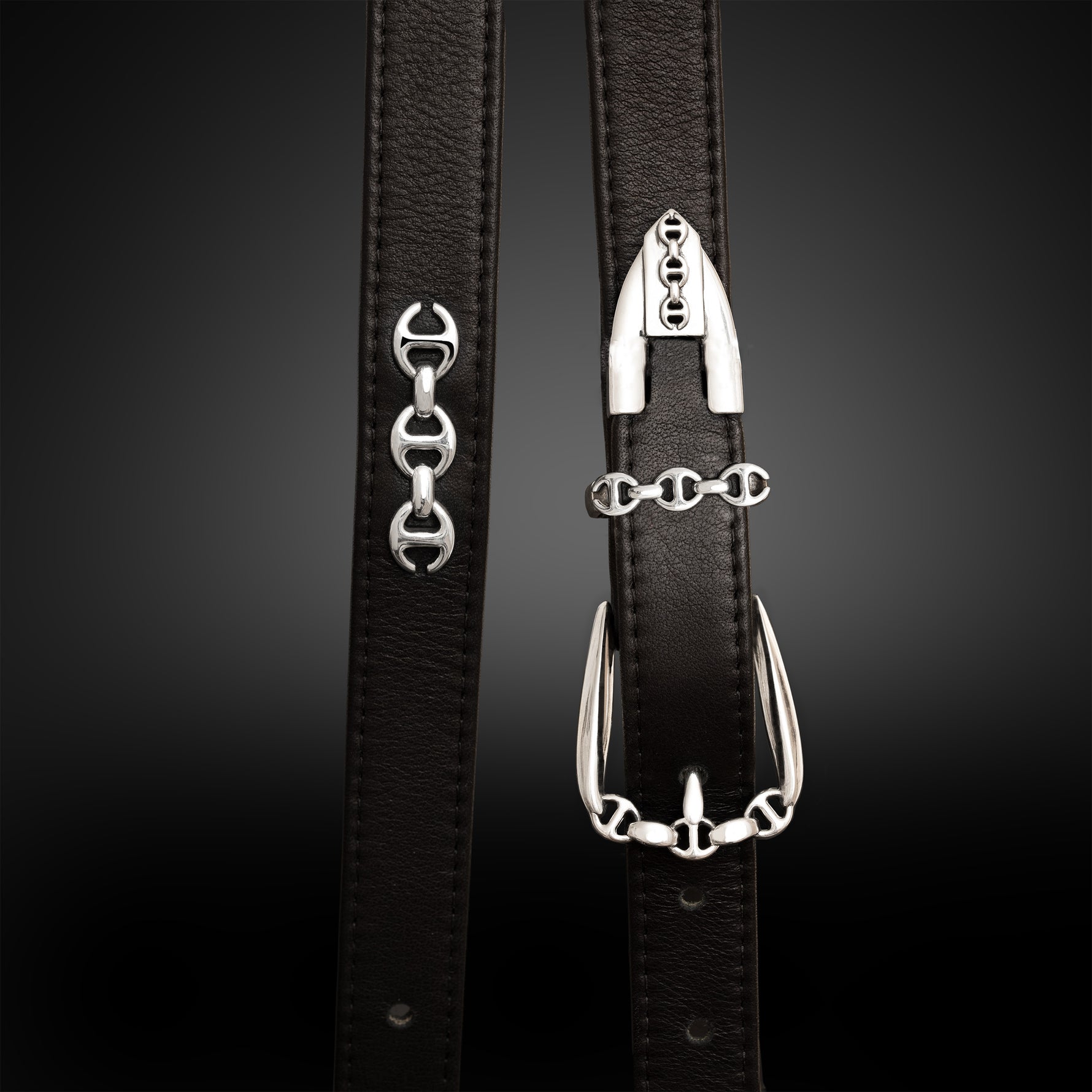 Smooth Leather Western Belt made from cowhide and embellished with .925 sterling silver hardware including a buckle, keeper, tip, and Hoorsenbuhs' signature tri-link motif throughout. Ethically made in Los Angeles.