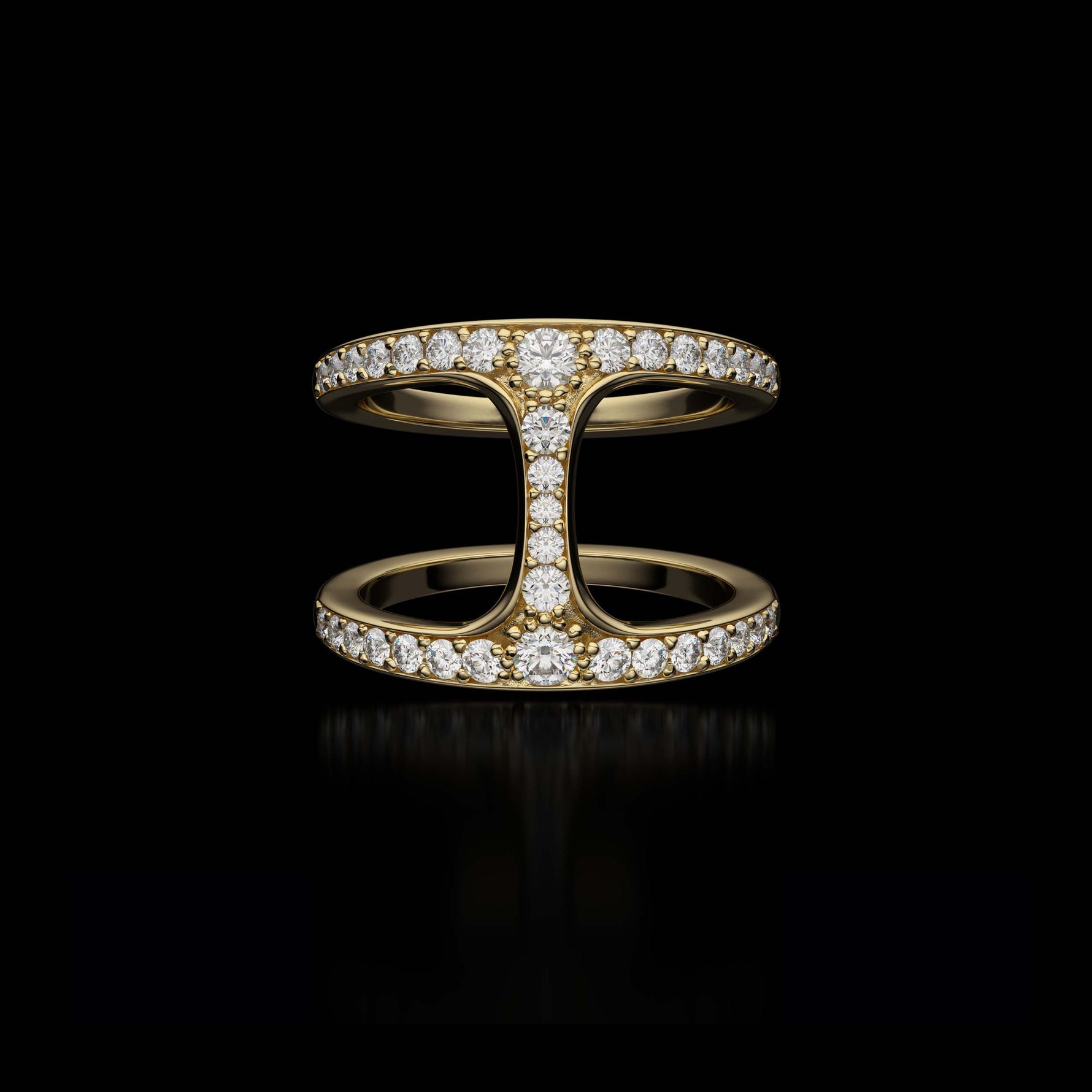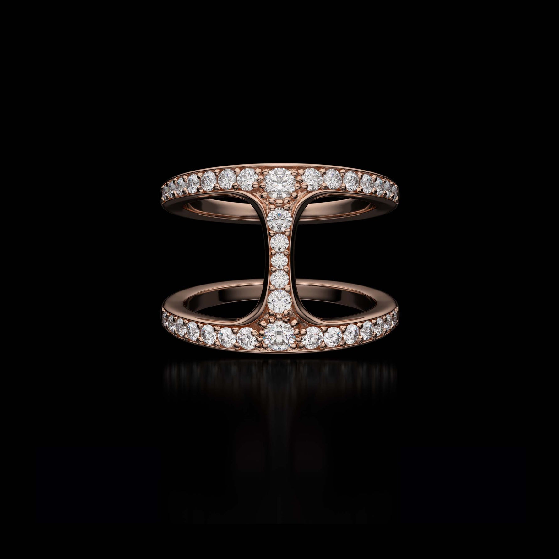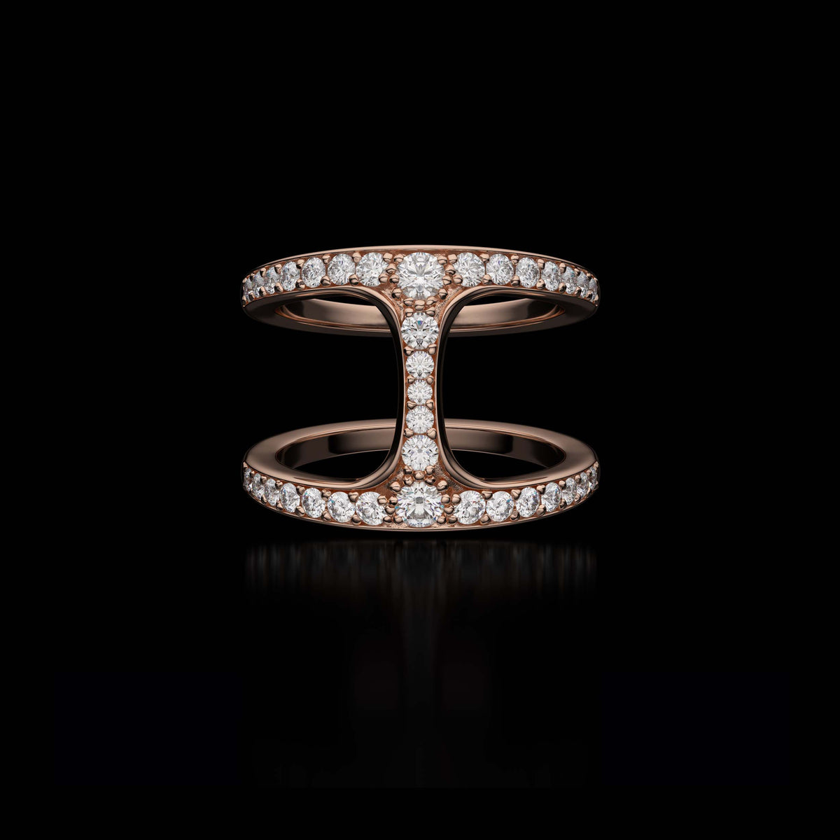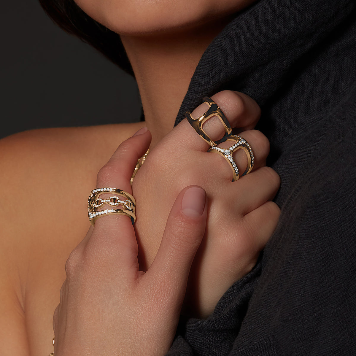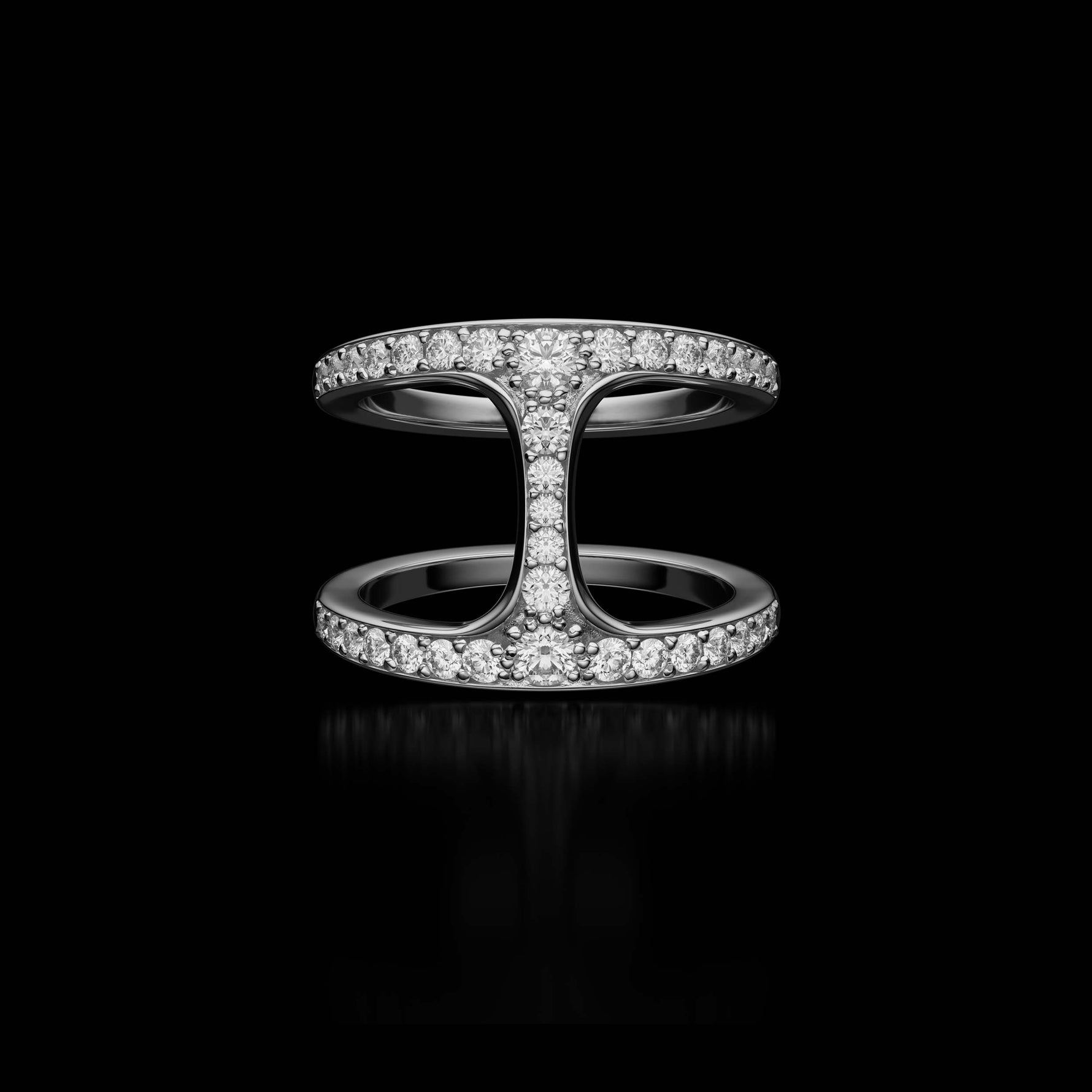 Each ring is crafted by hand and finished to HOORSENBUHS®’ exacting standards. Diamonds are set with precision along the surfaces of the link to maintain clean geometry and material integrity without softening the silhouette.