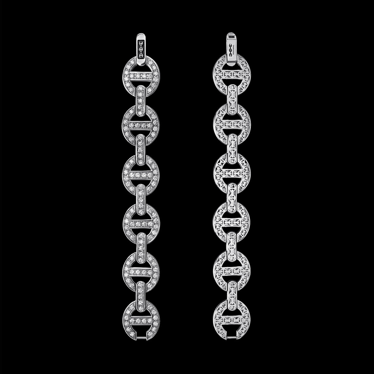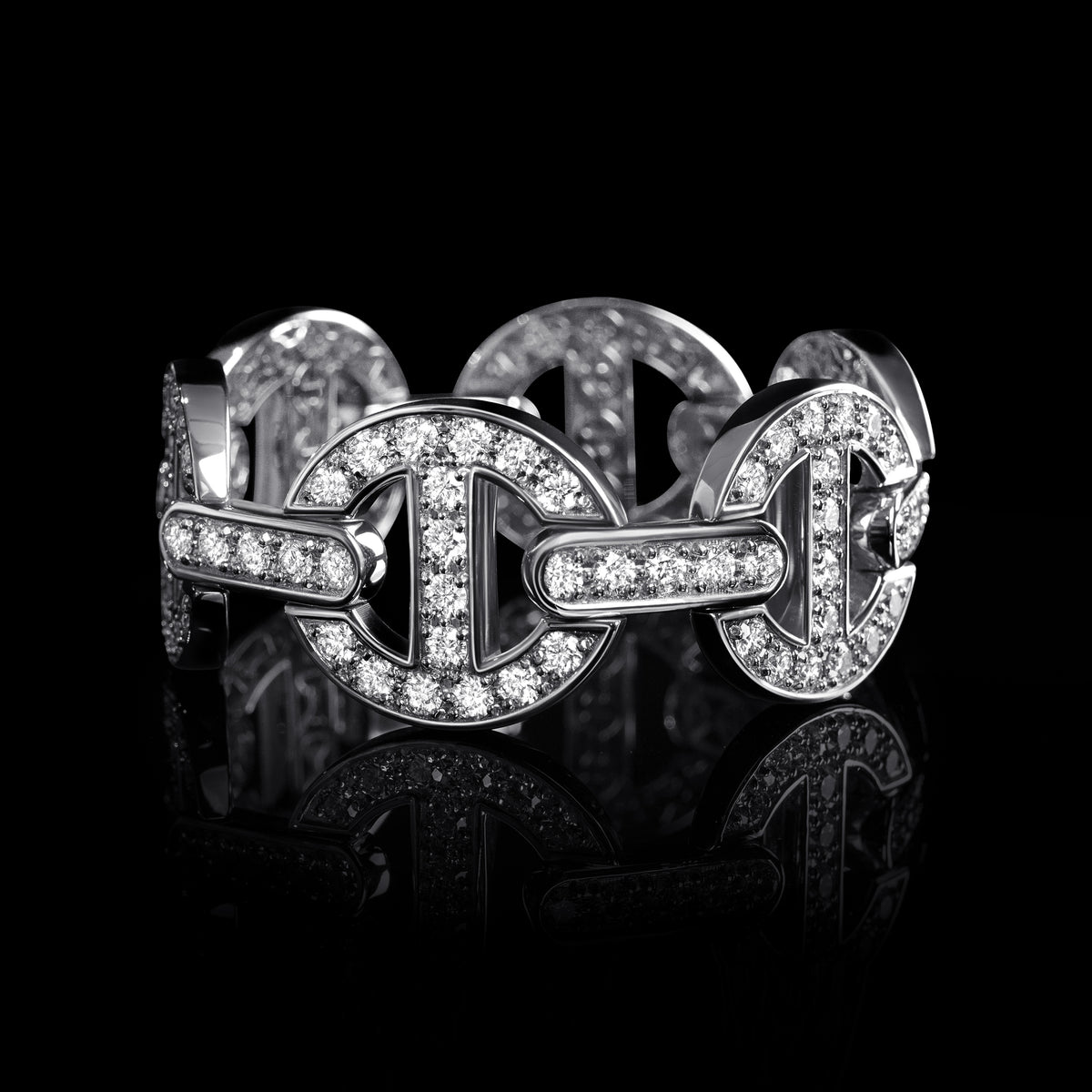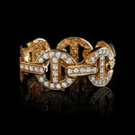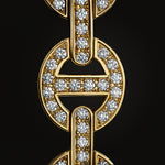 Unit price perThe Antiquated MMV [large] hinged bracelet, hand crafted with our iconic tri-link motif in weighted 18k gold, features silhouetted iterations of the tri-link, hand set in it’s entirety, with 20 karats of G VS1 natural diamonds. High jewelry at it’s finest.