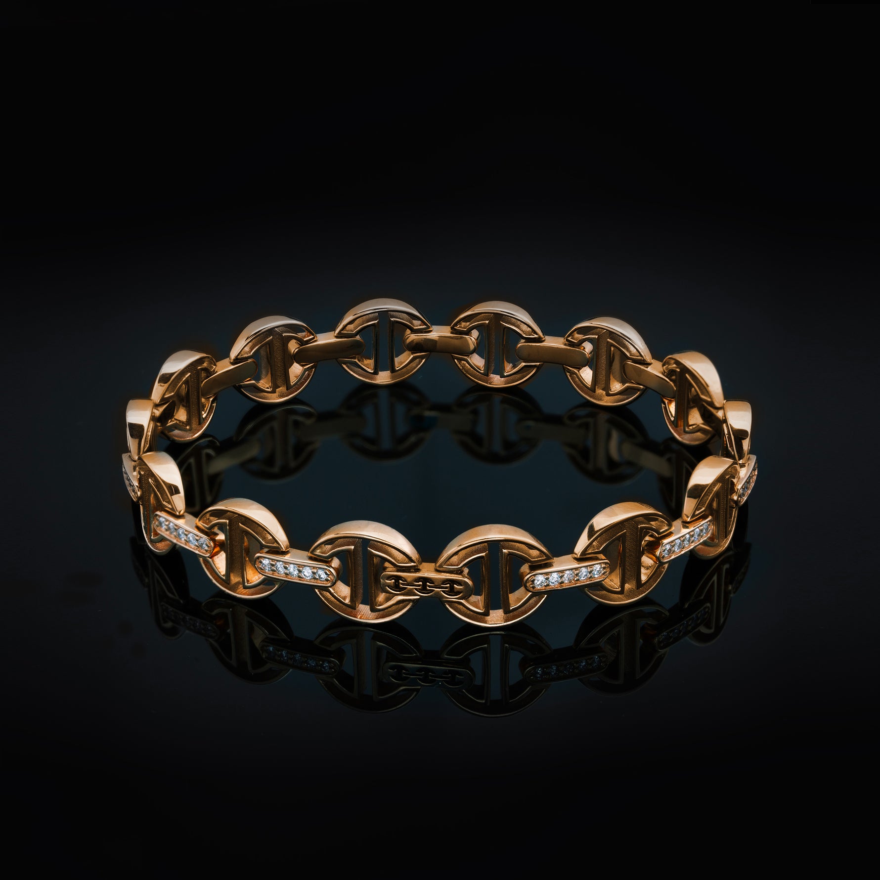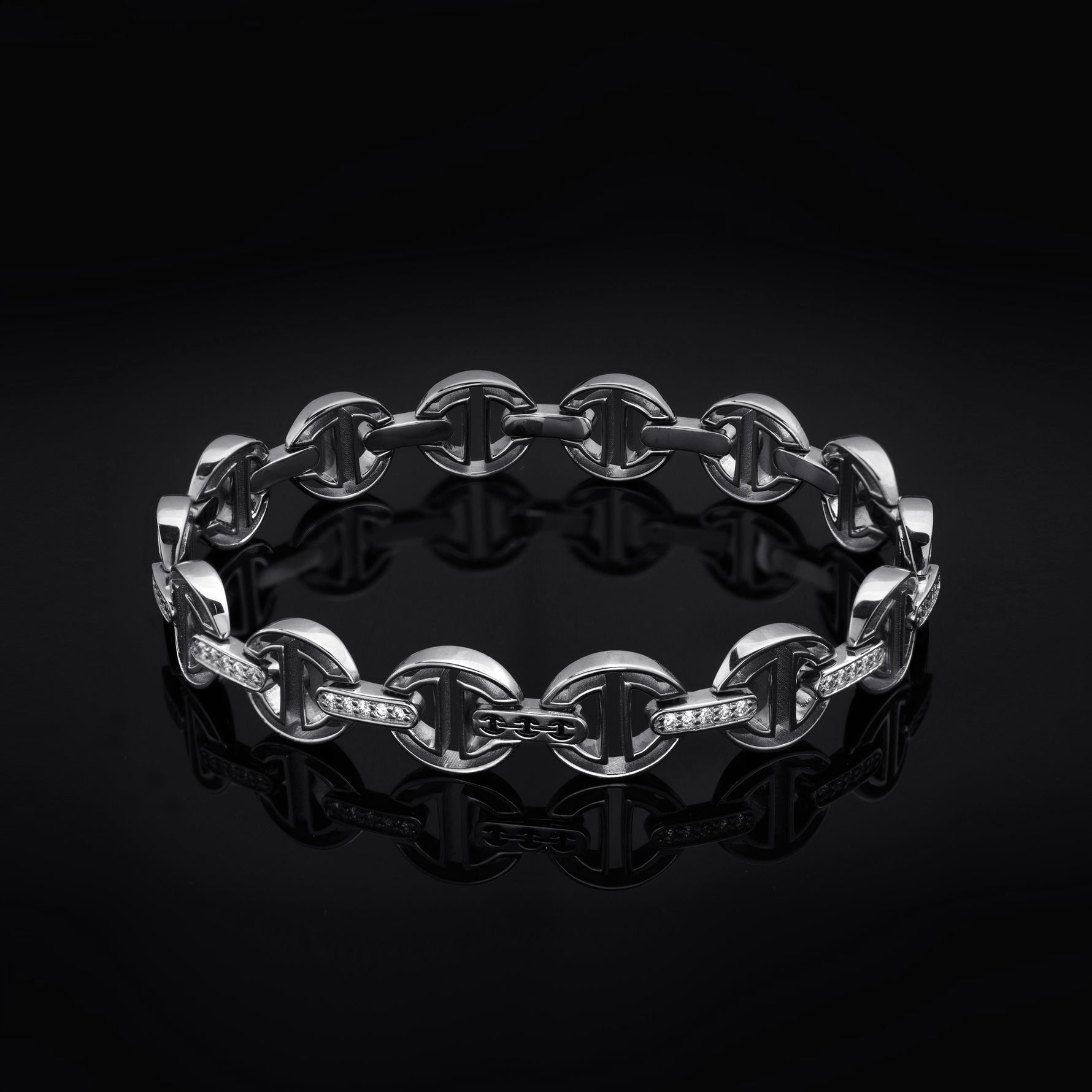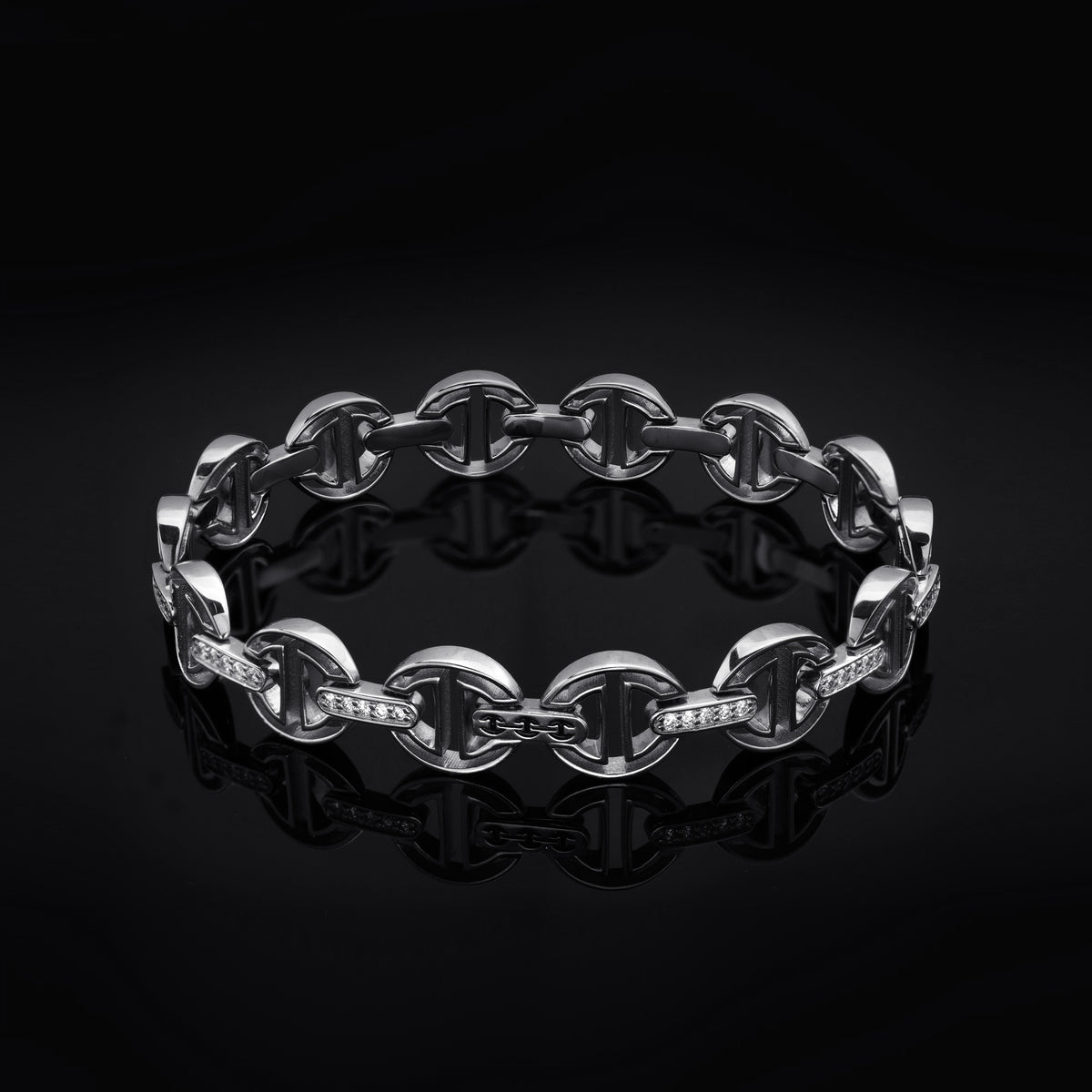 MMV SMALL LINK BRACELET WITH DIAMOND BRIDGES