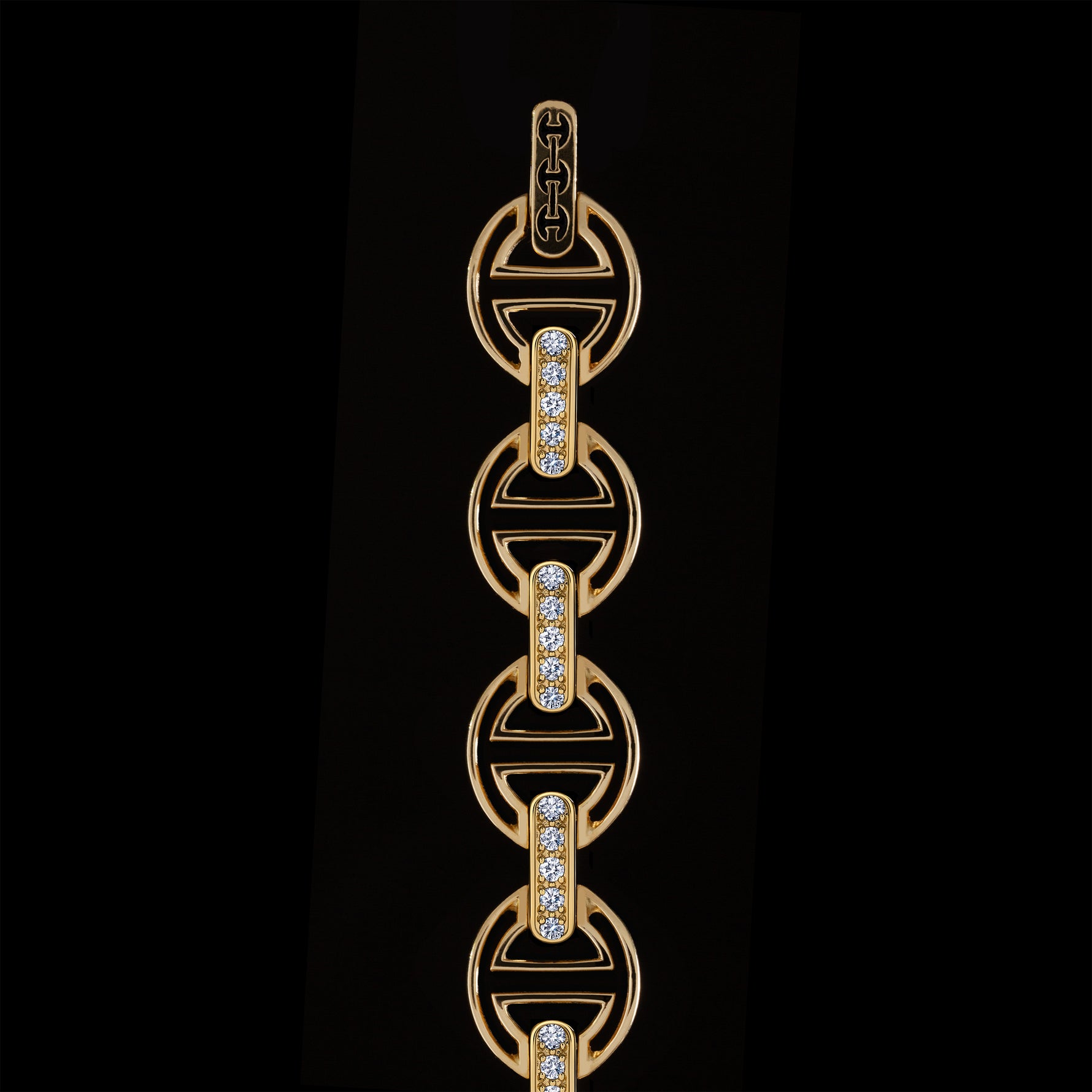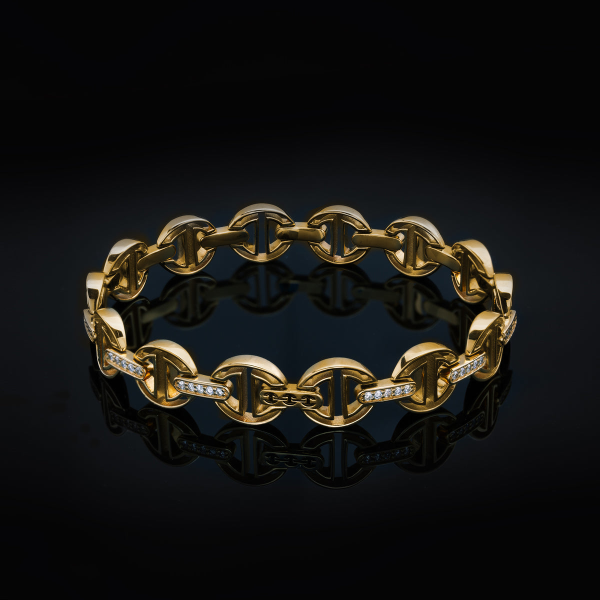 MMV SMALL LINK BRACELET WITH DIAMOND BRIDGES - 18K Yellow Gold / 7.25" - 14 Links