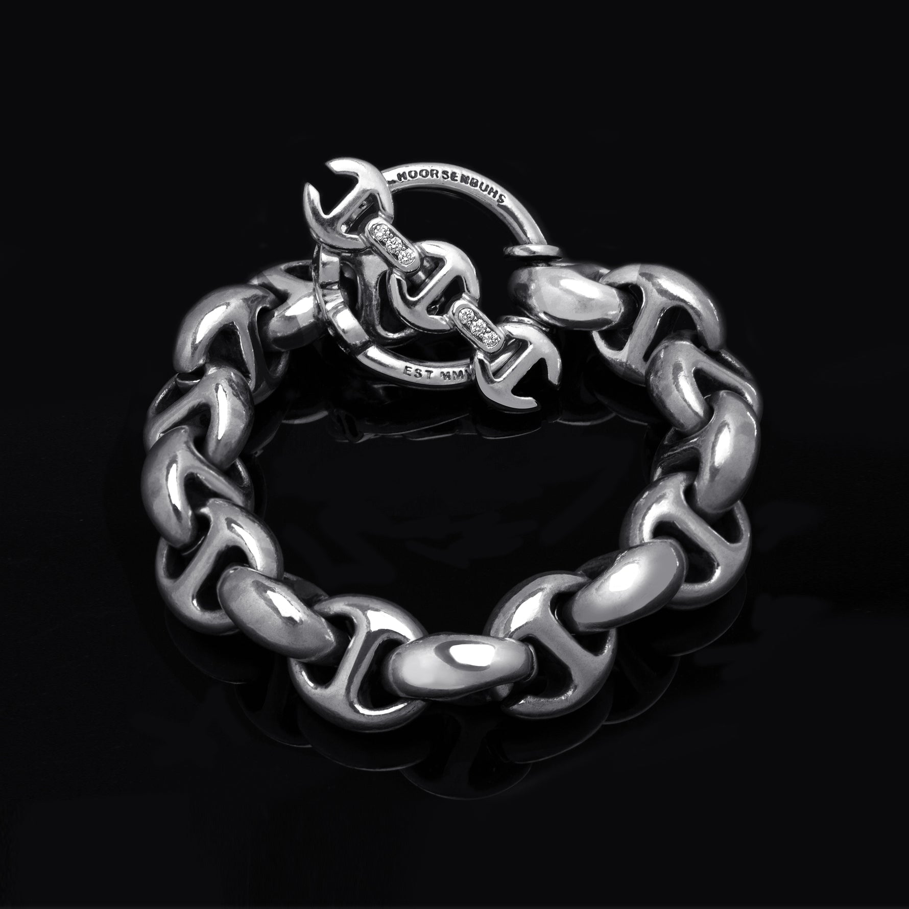 Unit price perSubstantial handmade 15MM Open-Link bracelet featuring our iconic tri-link loop and toggle closure.