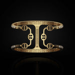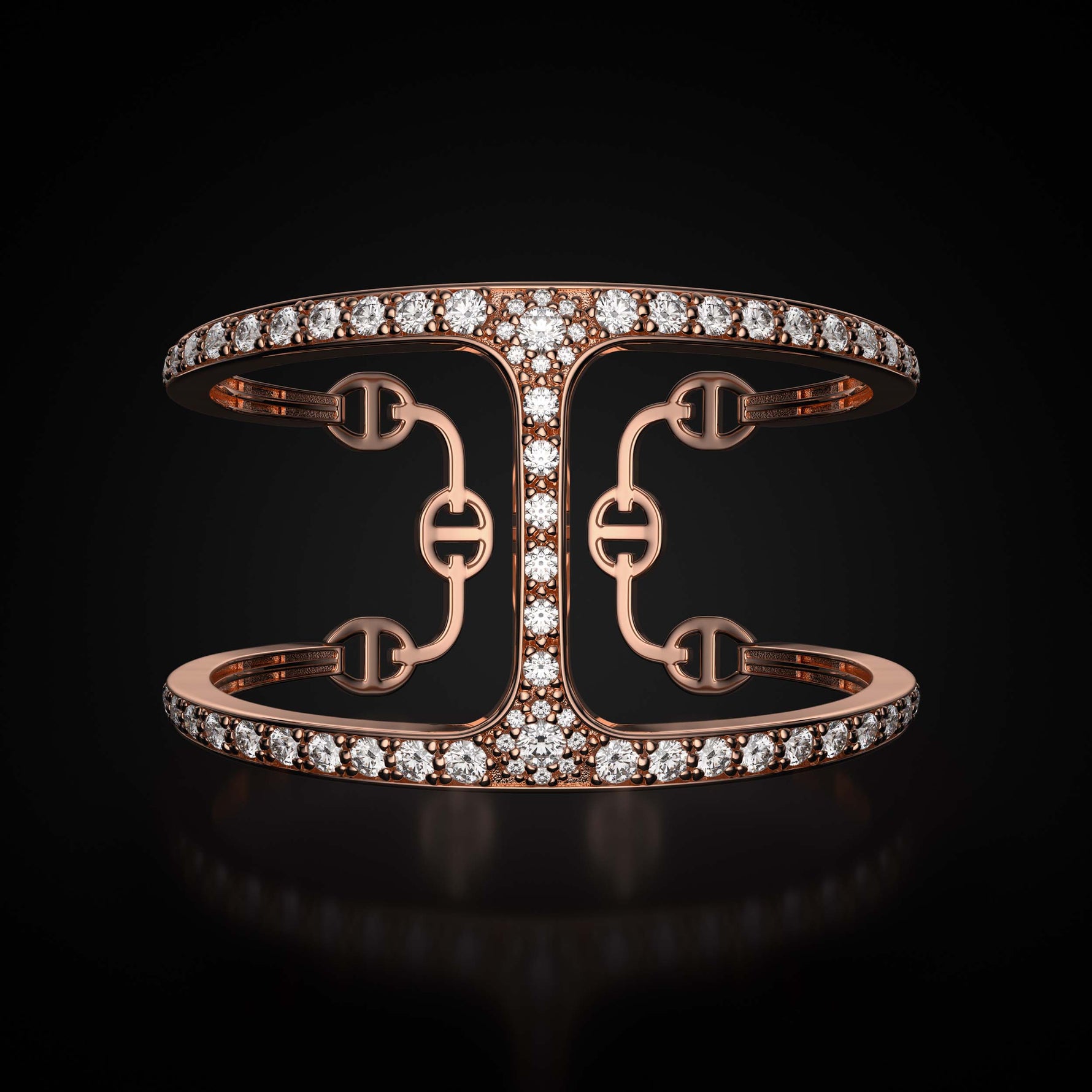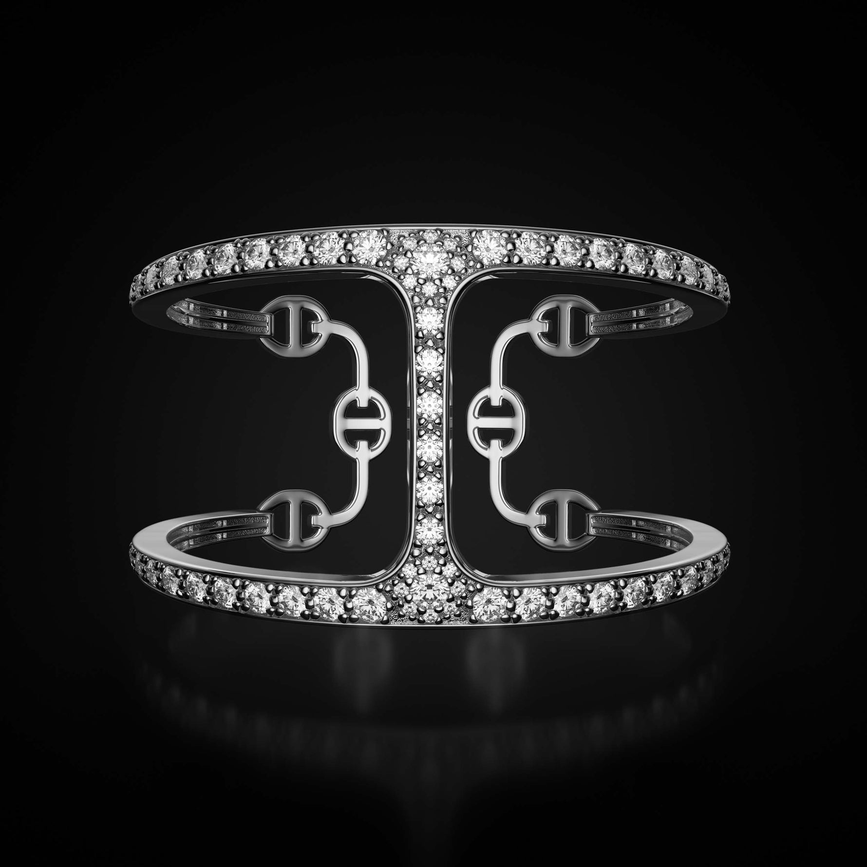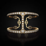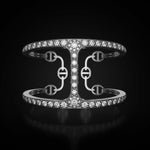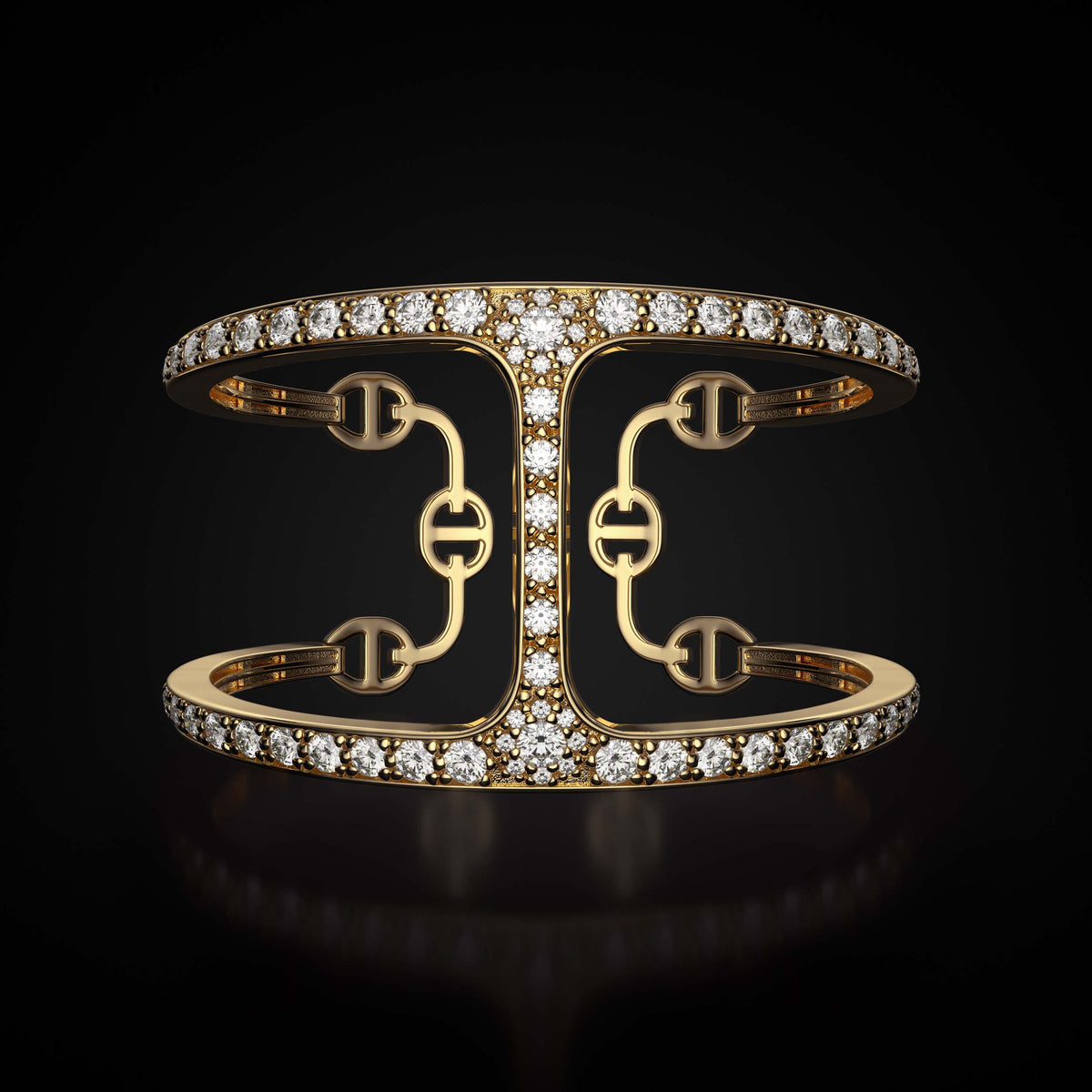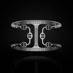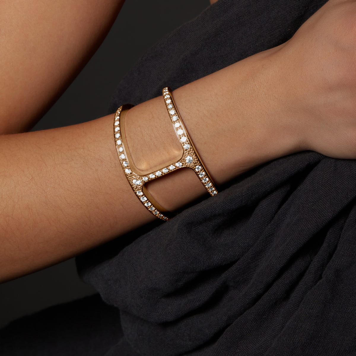 A single iconic link wrapped and elongated around the wrist covered in round diamonds.