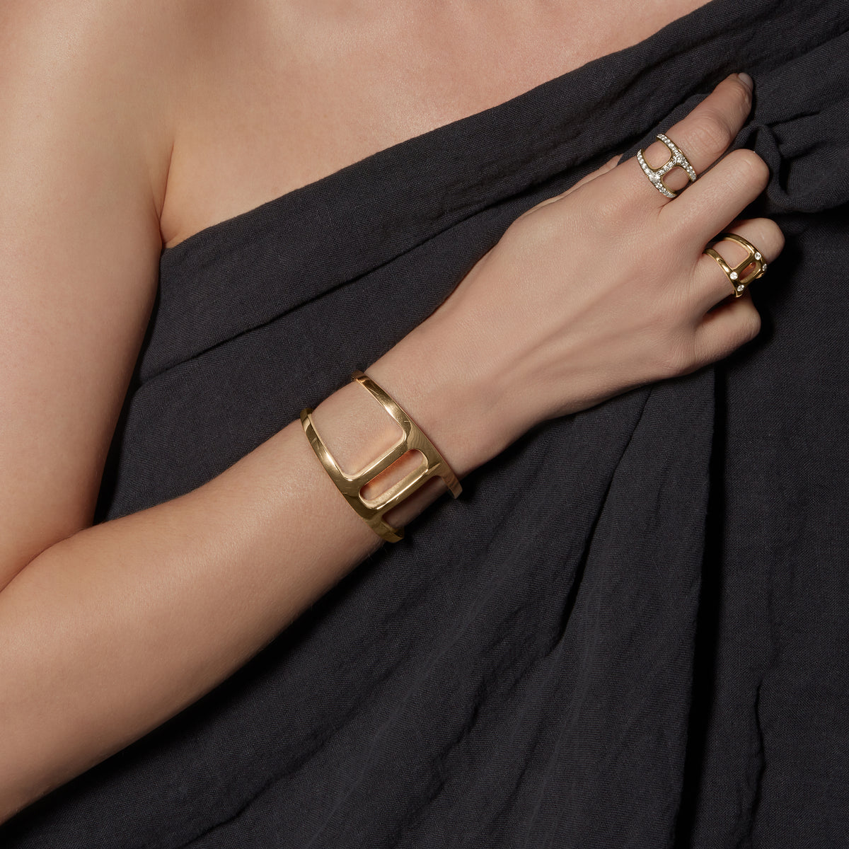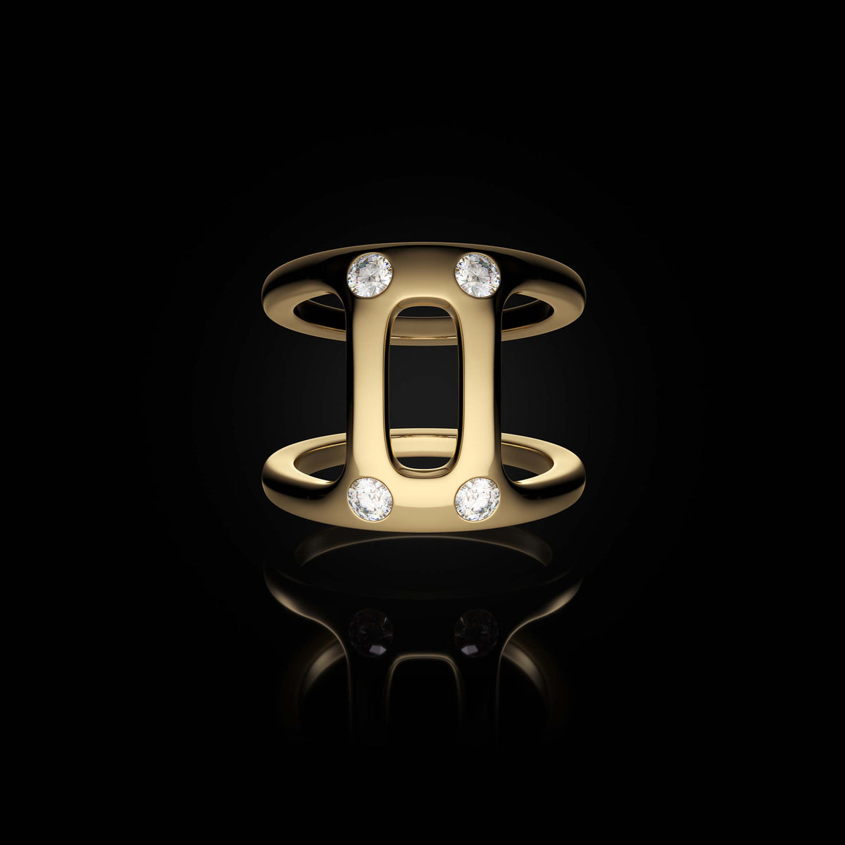 The Dame Phantom II with Four Diamond Hits is constructed from solid 18K gold or sterling silver and defined by HOORSENBUHS®’ Phantom silhouette in a refined profile. Elongated geometry and controlled negative space maintain structural continuity across the band.