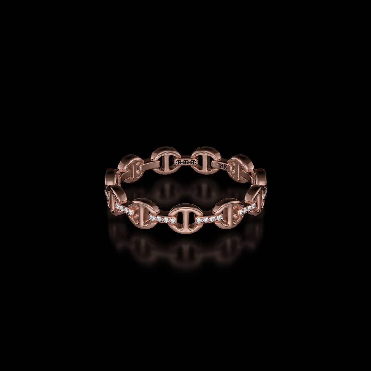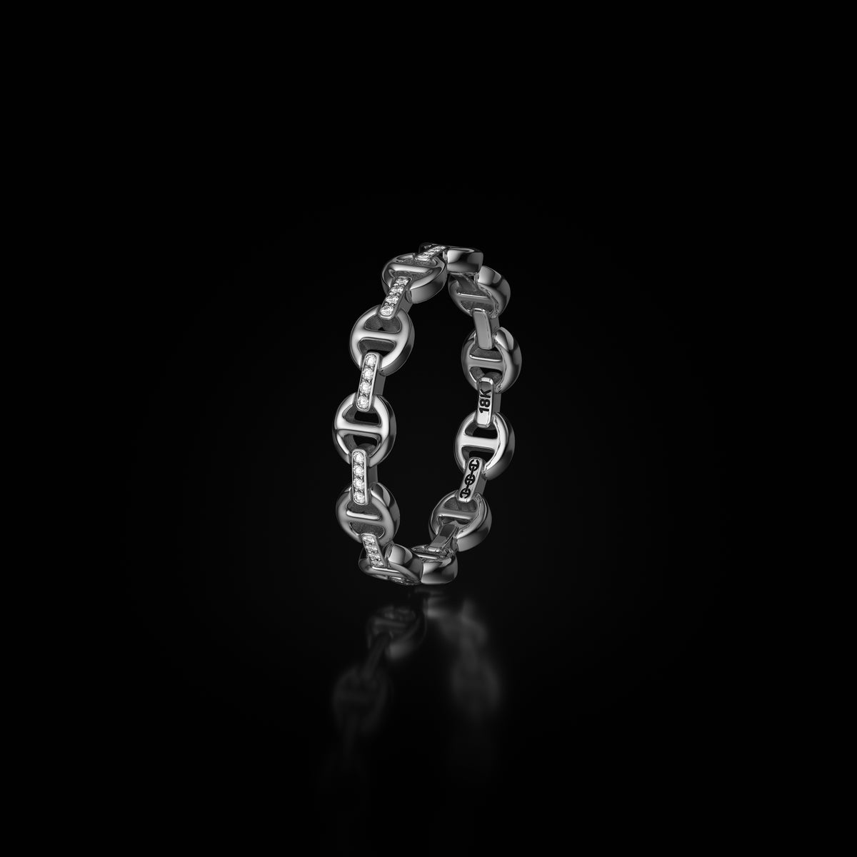 The Micro II with Diamond Bridges is constructed from solid 18K gold and defined by HOORSENBUHS®’ micro-scale tri-link architecture. Diamond-set bridge elements are integrated into the structure, adding measured contrast while preserving proportion and continuity.
