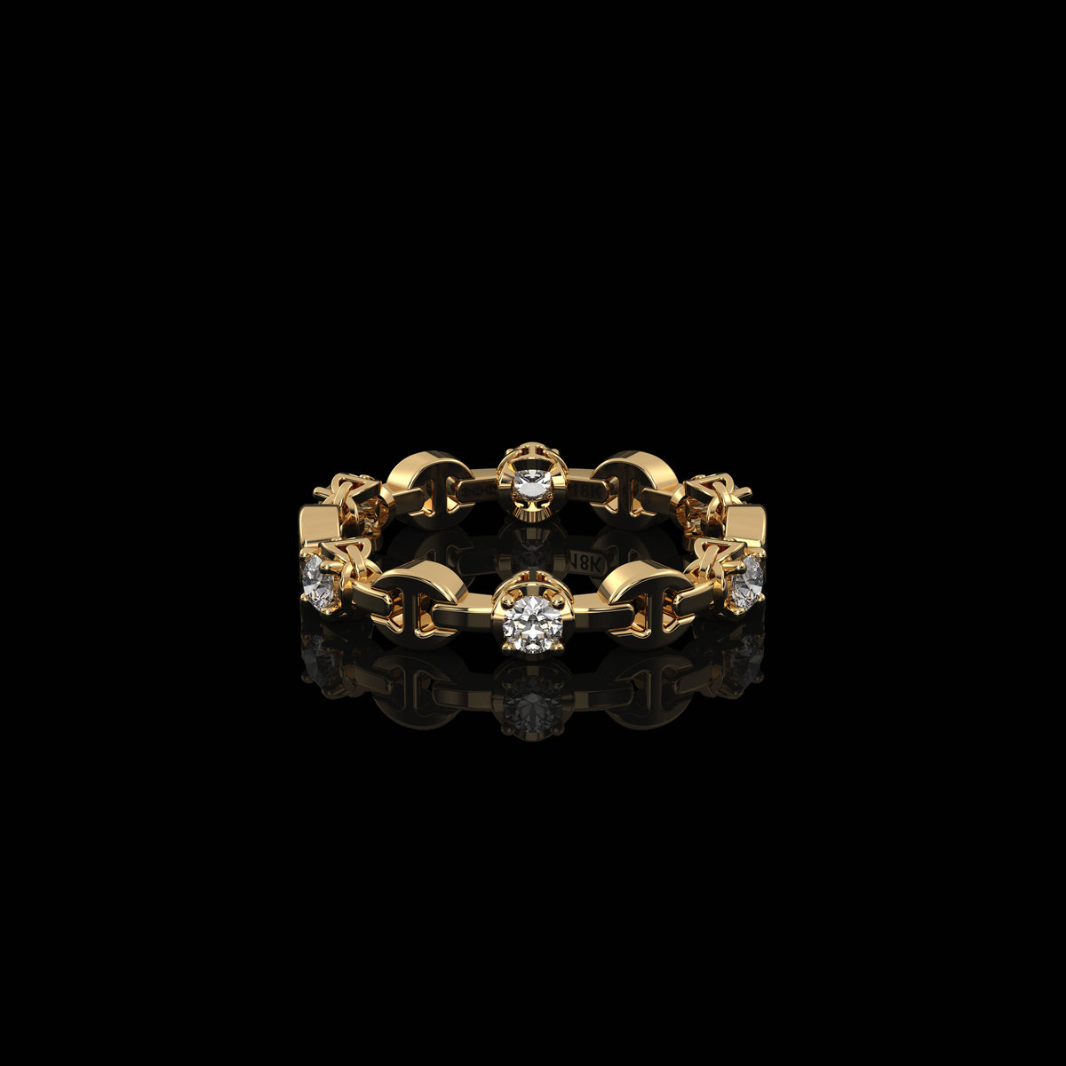 The Micro II with 6 Diamonds is constructed from solid 18K gold and defined by HOORSENBUHS®’ micro-scale tri-link architecture. Six hand-set natural diamonds are integrated directly into the structure, maintaining balance, proportion, and clarity within a reduced profile.