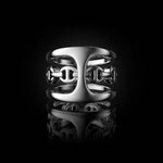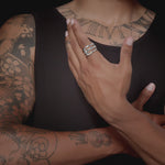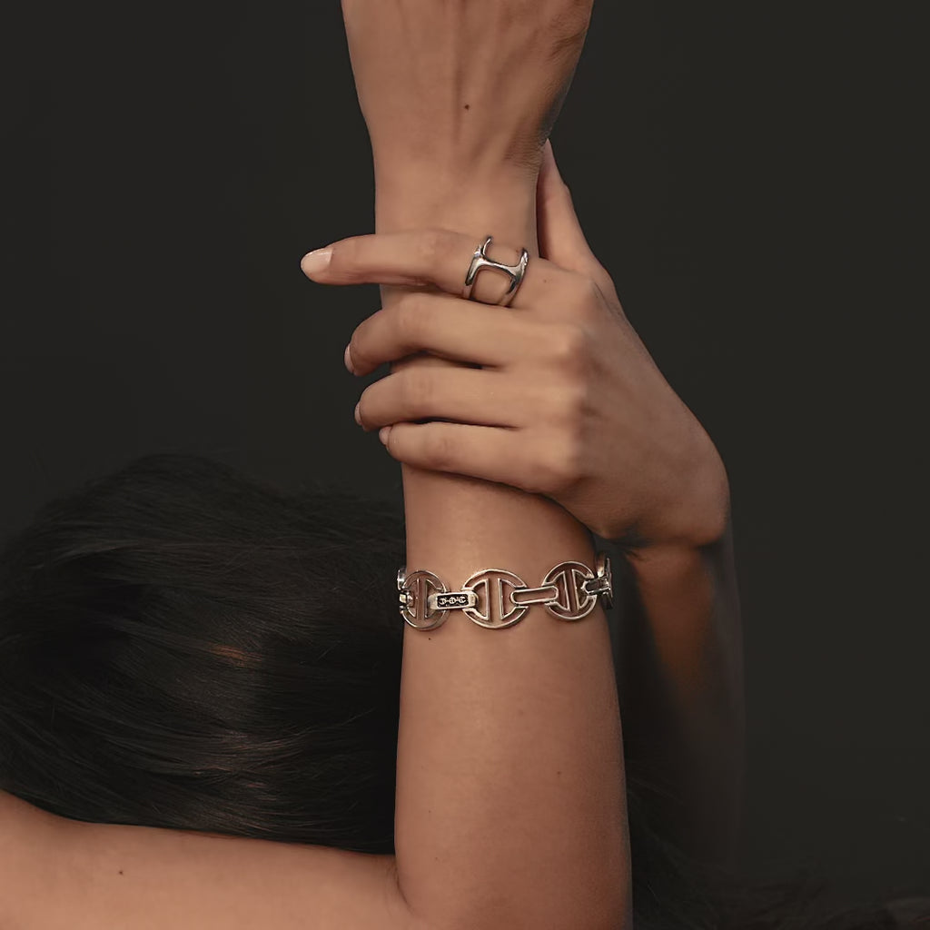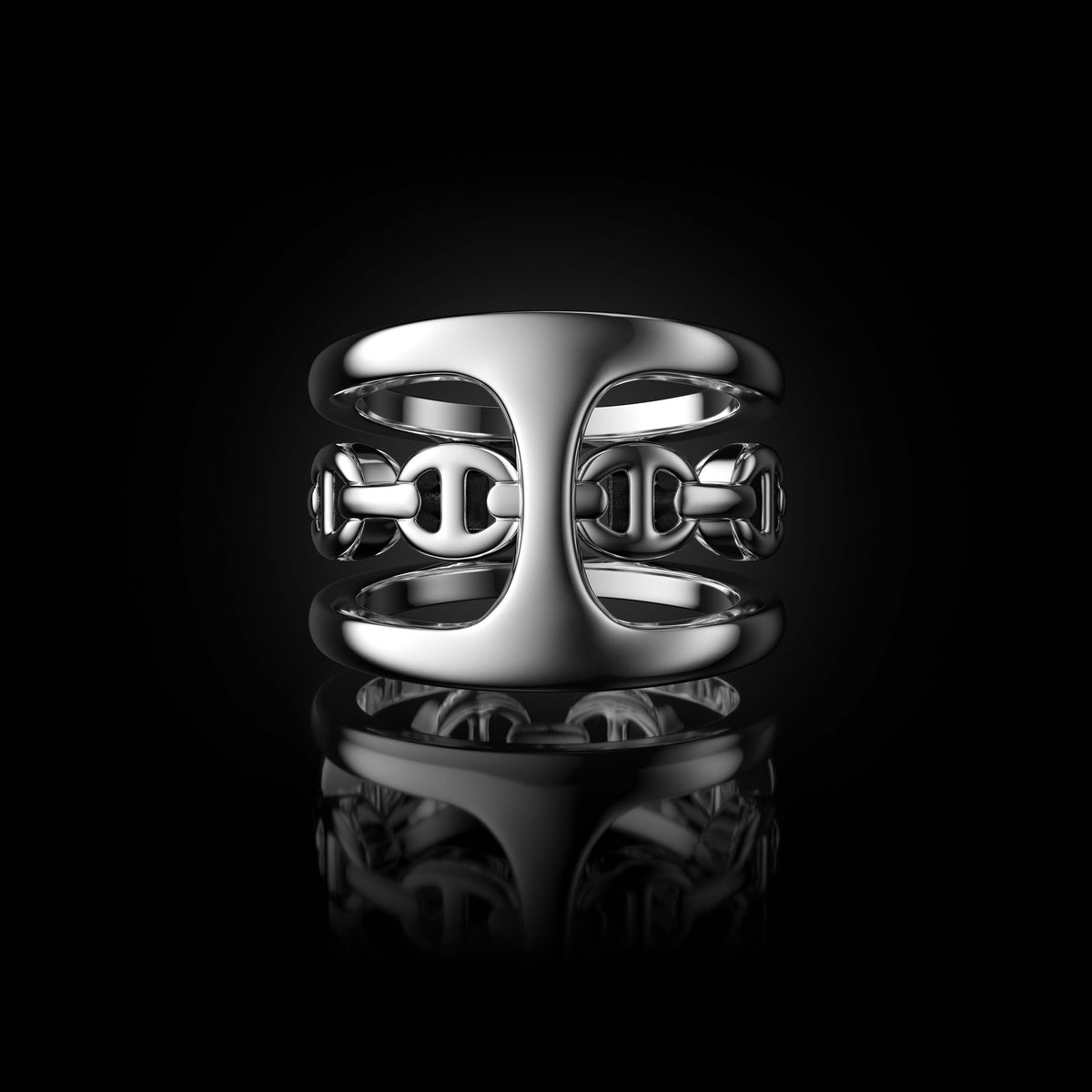 The Phantom Clique is constructed from solid 18K gold or sterling silver and defined by HOORSENBUHS®’ Phantom silhouette, formed as a continuous band with an open link profile and restrained negative space.