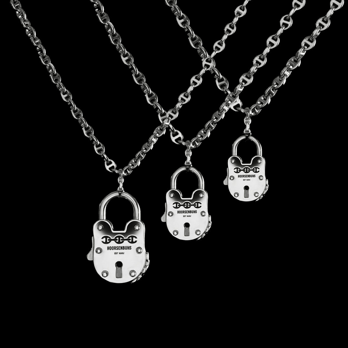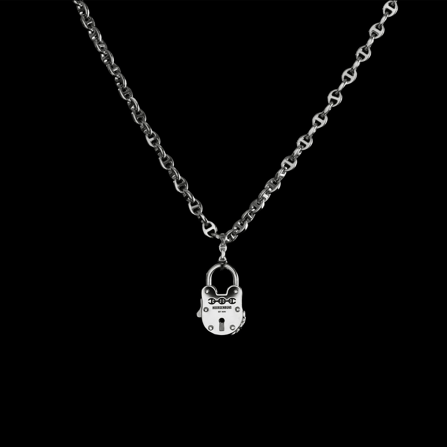 Classic lock pendant measuring 25MM that opens and closes to wear with an Open-Link chain or on chain of your choice.
