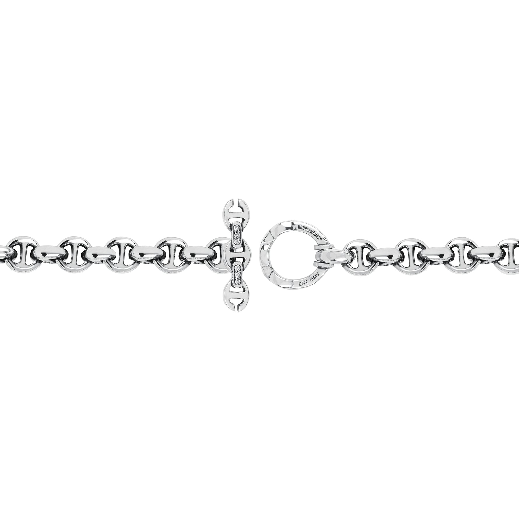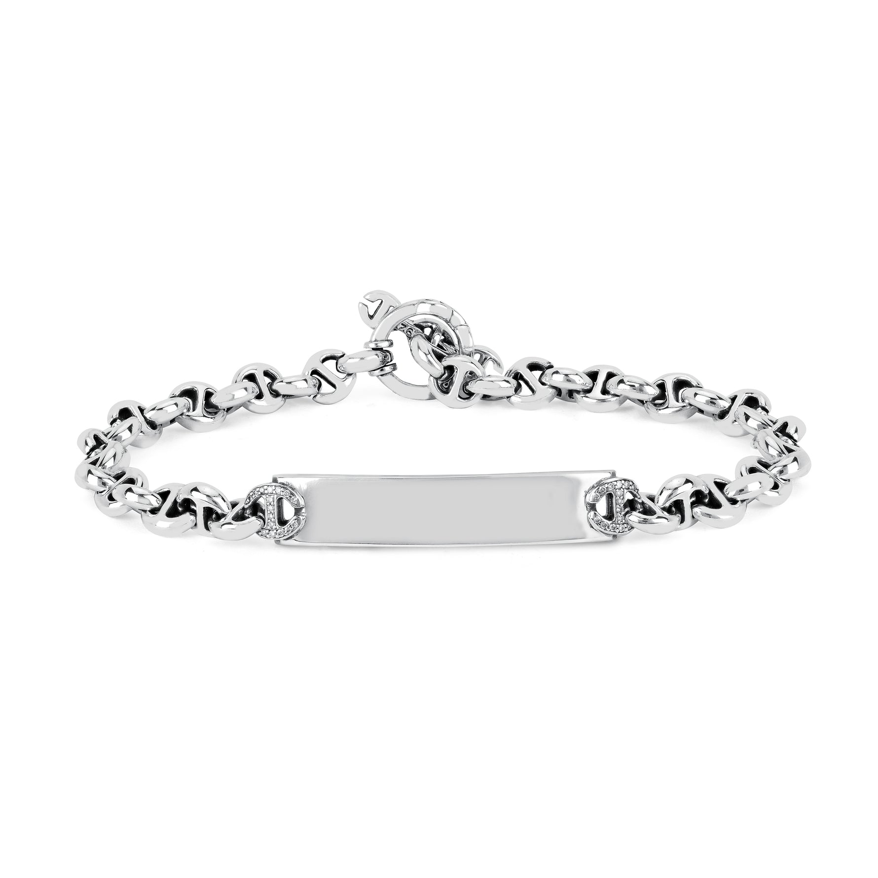Unit price perHandmade 5MM Open-Link™ bracelet featuring a monogram plate with diamond accents and our iconic tri-link loop and toggle closure.