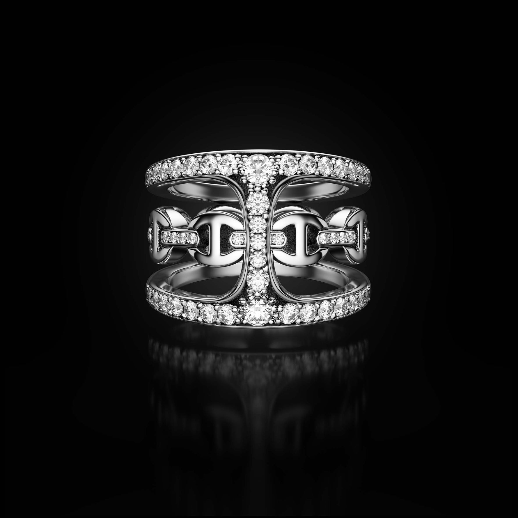 Unit price perA fully antiquated single iconic link wrapped and elongated around the finger combined with our classic tri-link clique with diamond bridges that snaps into place, creating a stunning customizable piece.