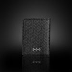 Bi-fold monogram cardholder featuring a printed nylon shell with Hoorsenbuhs' signature monogram, a calfskin leather interior, and .925 sterling silver tri-link pin.  Ethically made in Los Angeles.