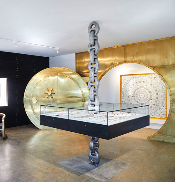 Keith and longtime friend Kether Parker, Hoorsenbuhs’ Brand Director, opened the company’s first private atelier in Santa Monica. The discreet by-appointment-only studio amassed a loyal clientele of discriminating tastemakers, entertainers, musicians, artists and designers. In late 2016, Hoorsenbuhs unveiled its first open-to-the-public gallery on Broome Street in New York City and in 2018 they took up residence at 2217 Main St. in Santa Monica, housing its Flagship retail store as well as its current atelier and headquarters. Every aspect of the space- from the sultry lighting to the tri-link emblazoned bolt heads scattered throughout—was designed and conceptualized entirely by Keith. The studio showcases Hoorsenbuhs’ jewelry like pieces of fine art, and also houses an exclusive collection of apparel, goods, leatherware and made-to-order furniture.