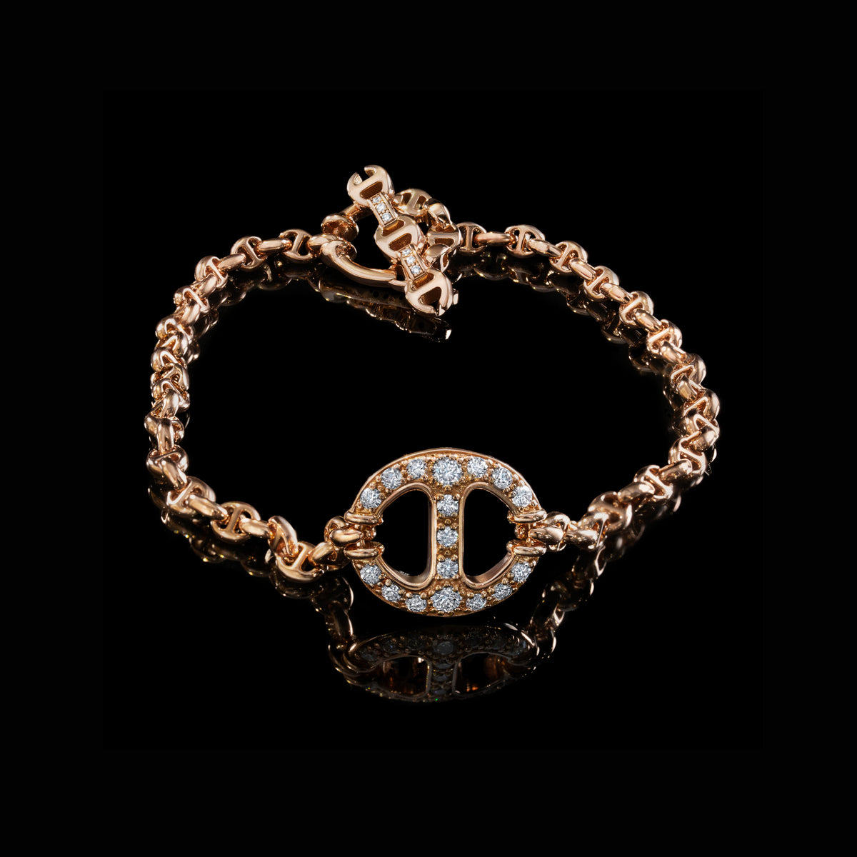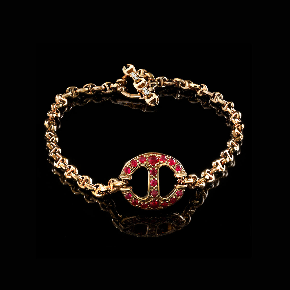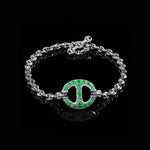 Unit price per14MM Single-Link with diamonds, emeralds, rubies or blue sapphires featured in the middle of a handmade Micro-Link bracelet featuring our iconic tri-link loop and toggle closure.