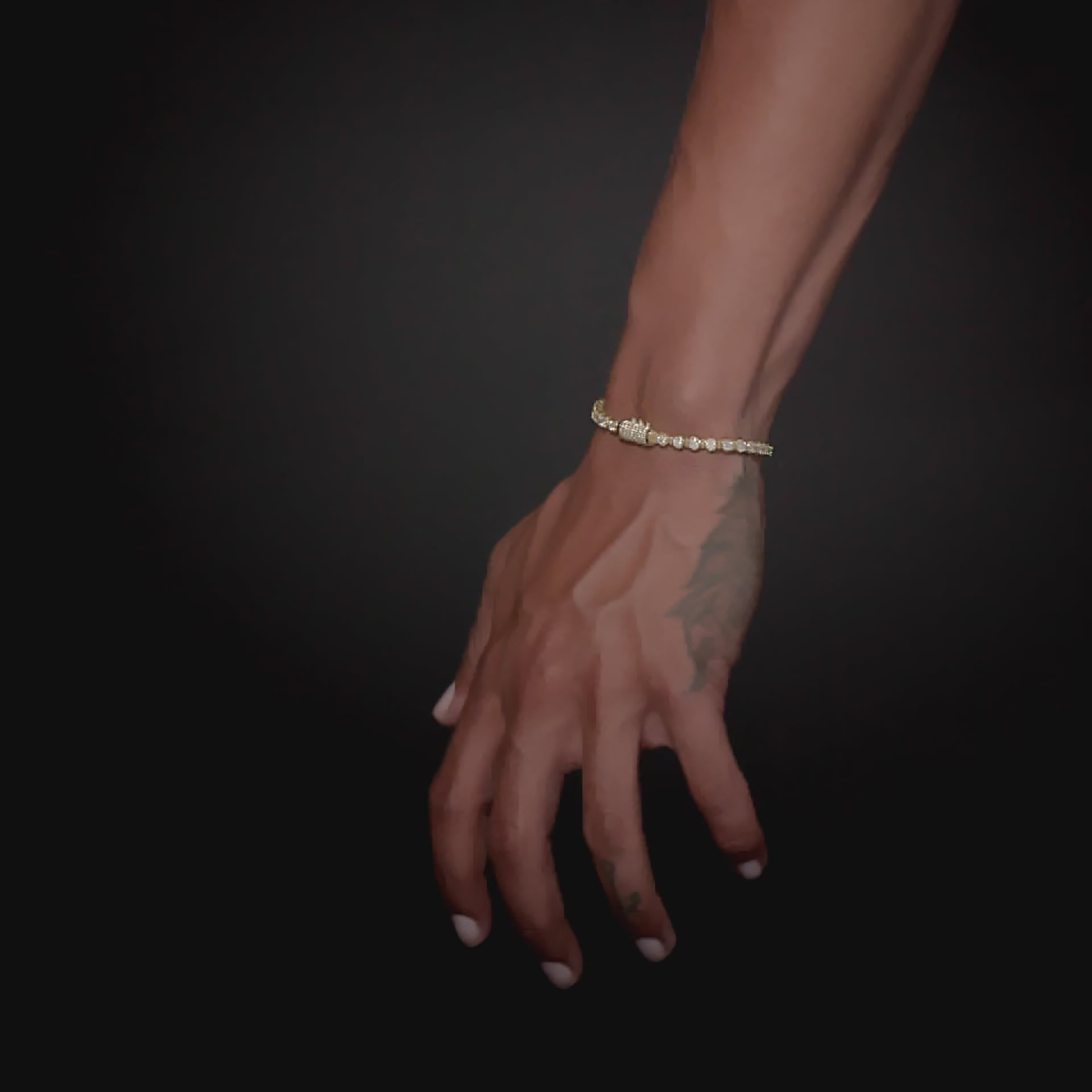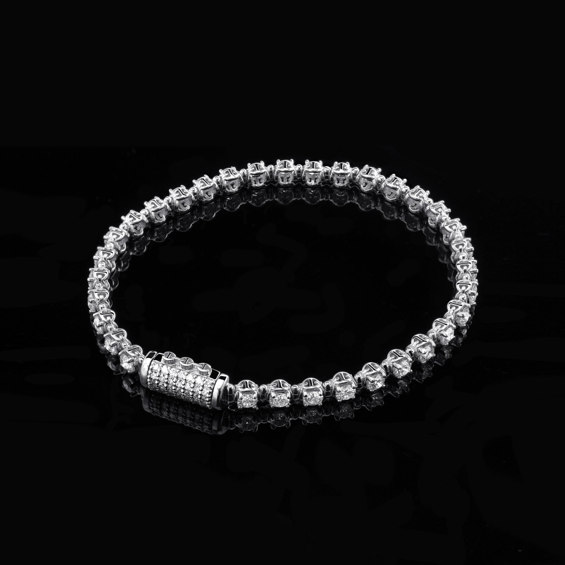 3MM Infinite Bracelet with a Tri-Link motif and prong set diamonds, round brilliant Belgian cut G-VSI.