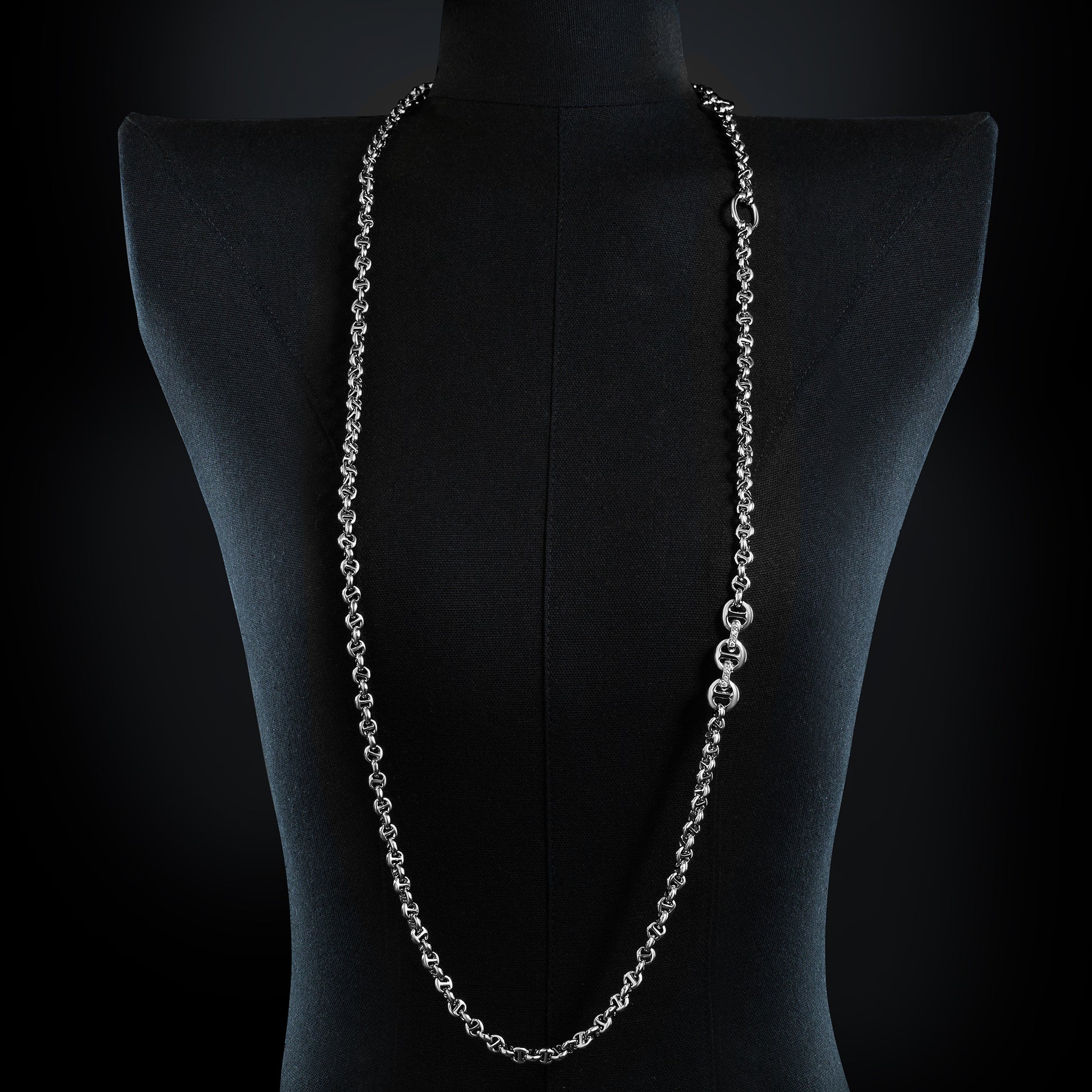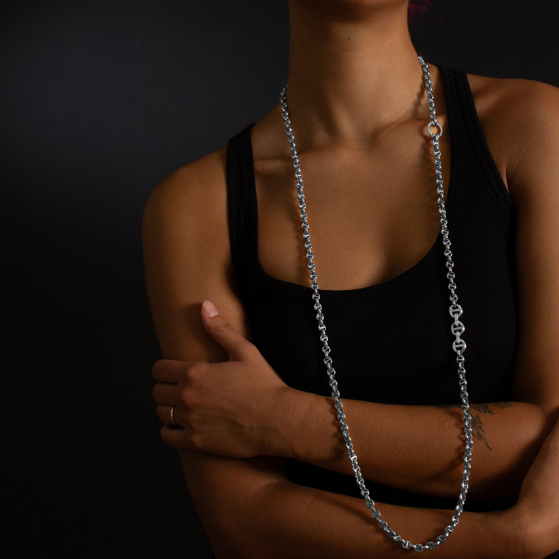 42" Handmade 5MM Open-Link™ necklace with diamond pendant featuring our iconic tri-link loop and toggle closure.