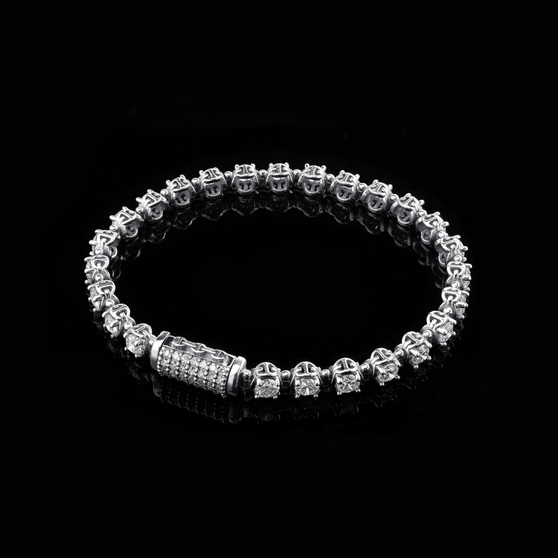 4MM Infinite Bracelet with a Tri-Link motif and prong set diamonds, round brilliant Belgian cut G-VSI.