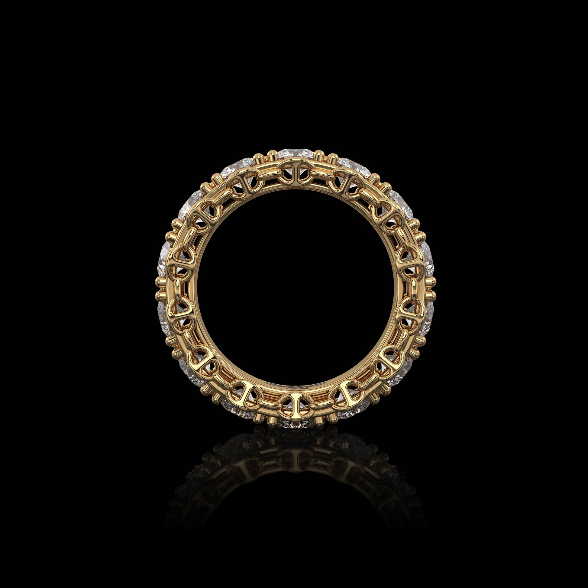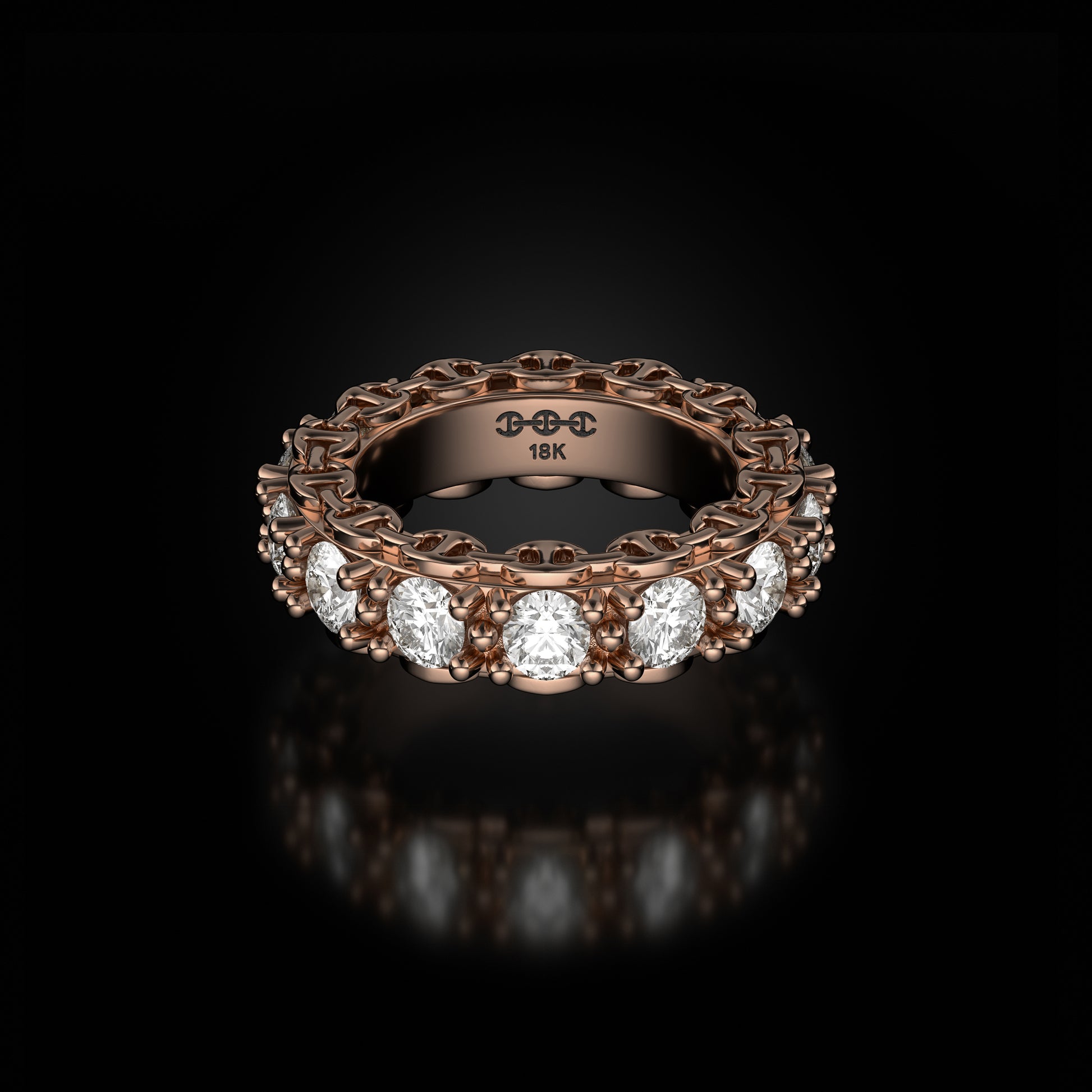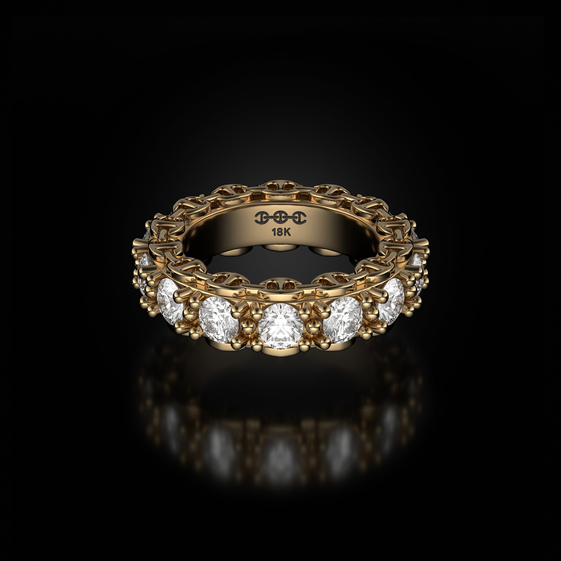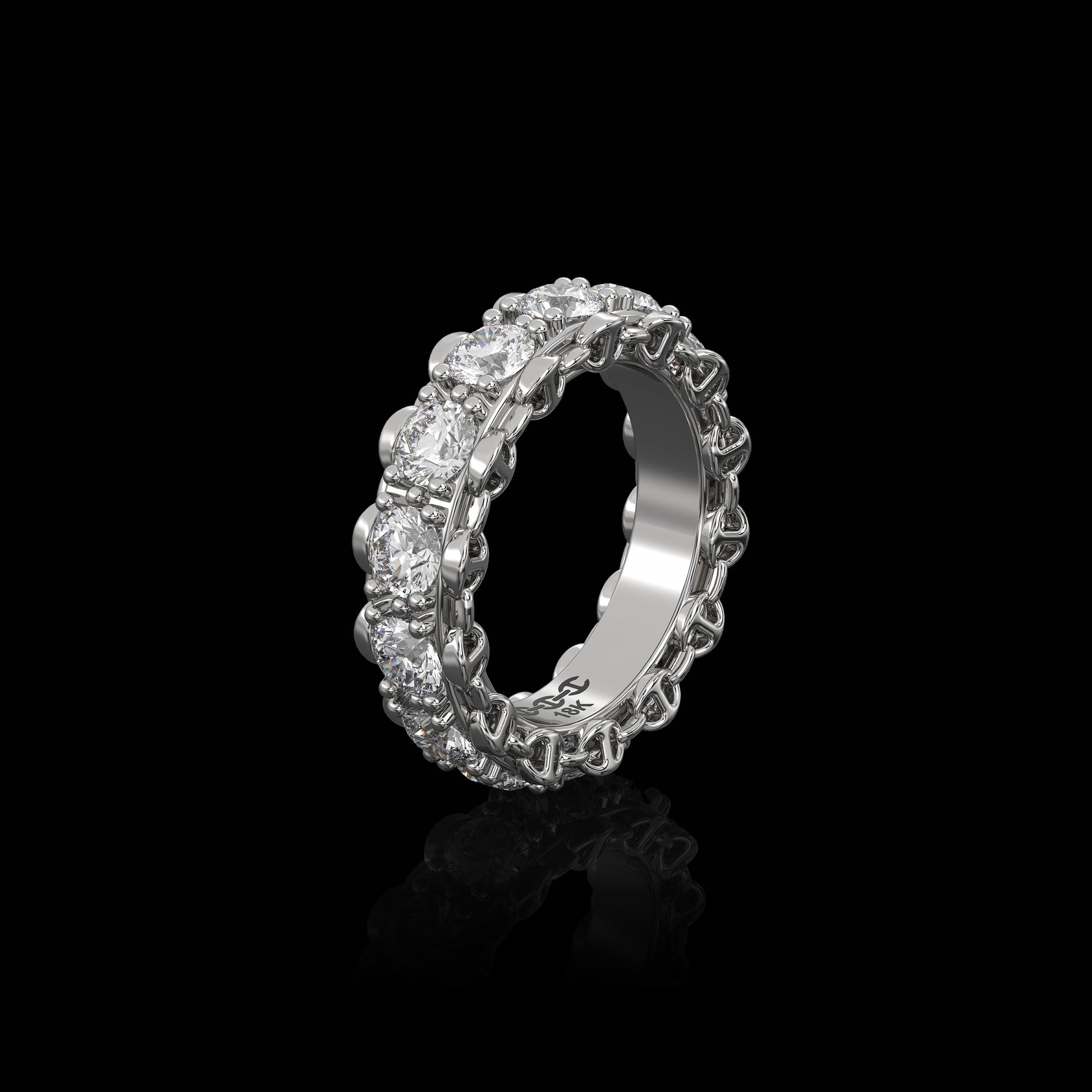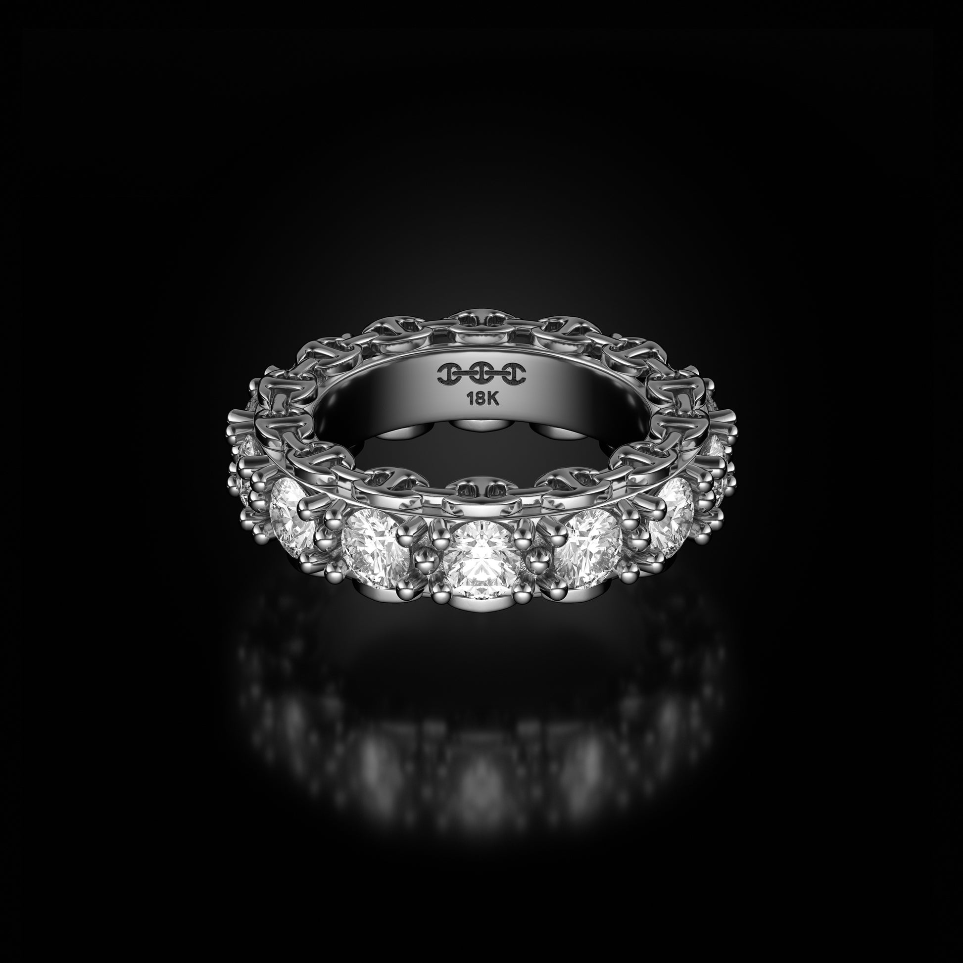 Tri-Link motif with prong set diamonds, round brilliant Belgian cut G-VSI.