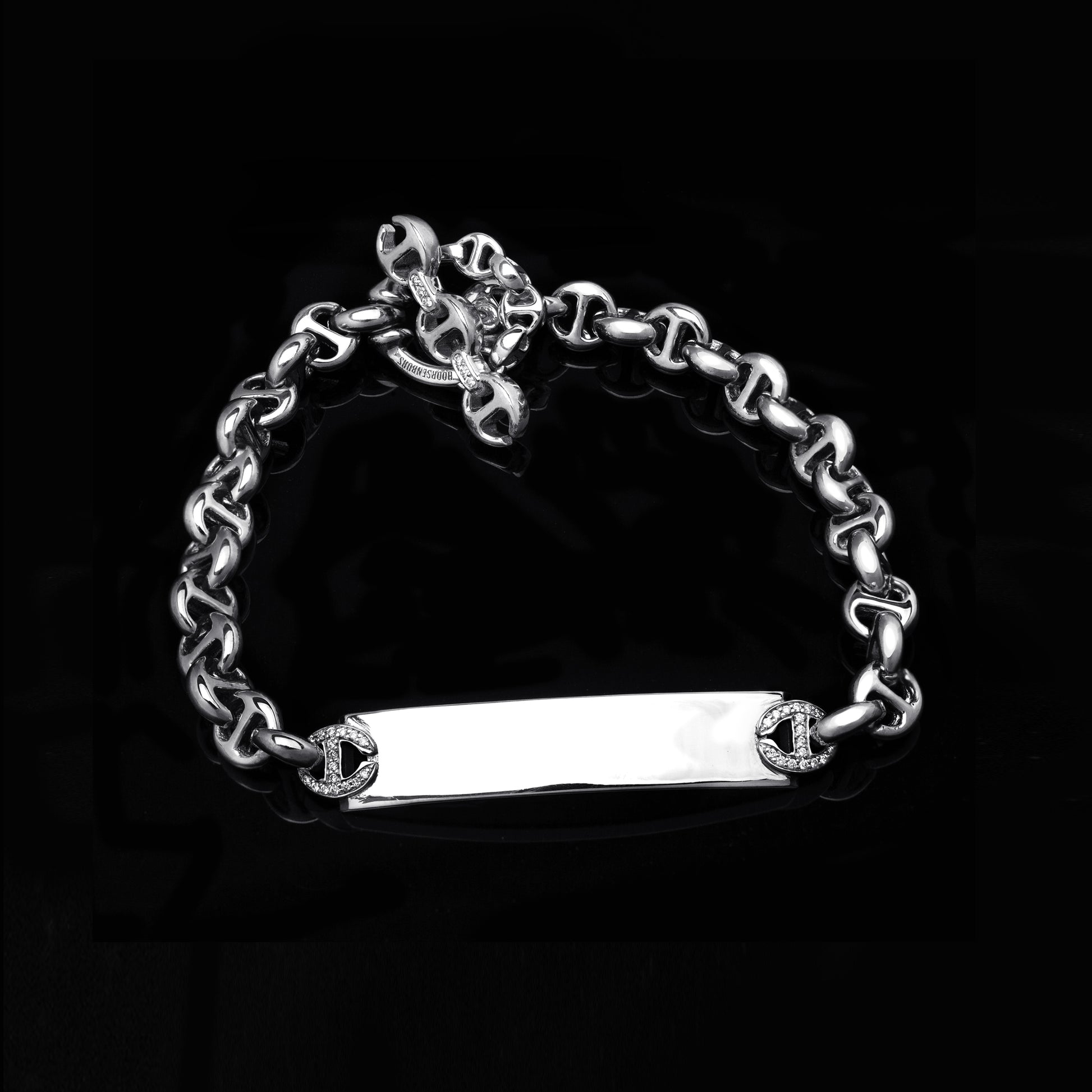 Handmade 5MM Open-Link™ bracelet featuring a monogram plate with diamond accents and our iconic tri-link loop and toggle closure.