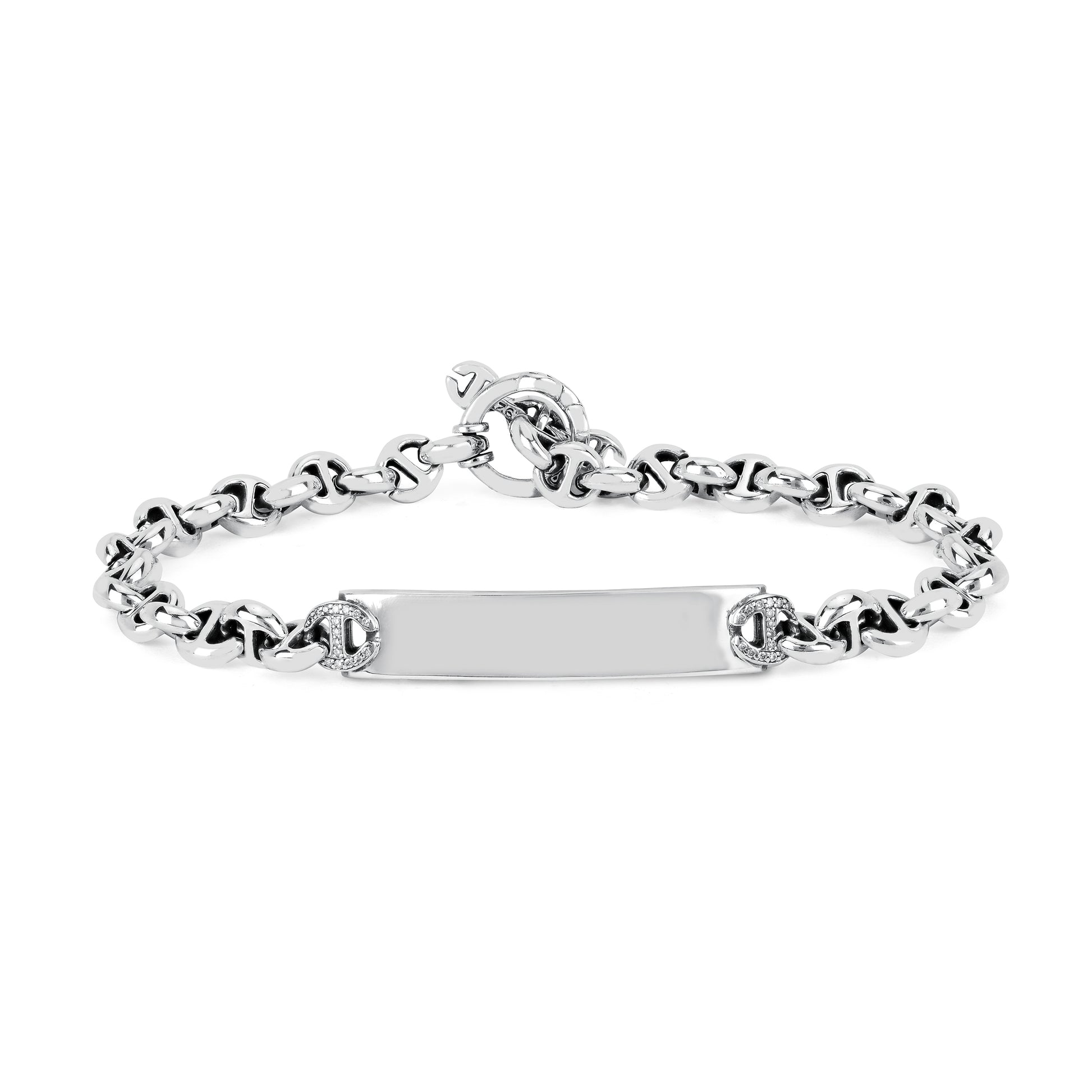 Handmade 5MM Open-Link™ bracelet featuring a monogram plate with diamond accents and our iconic tri-link loop and toggle closure.