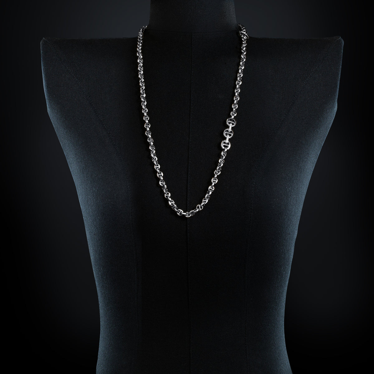 30" Handmade 5MM Open-Link™ necklace with diamond pendant featuring our iconic tri-link loop and toggle closure.