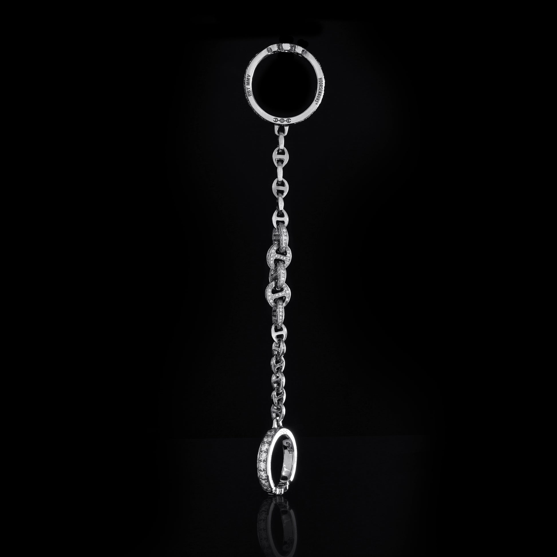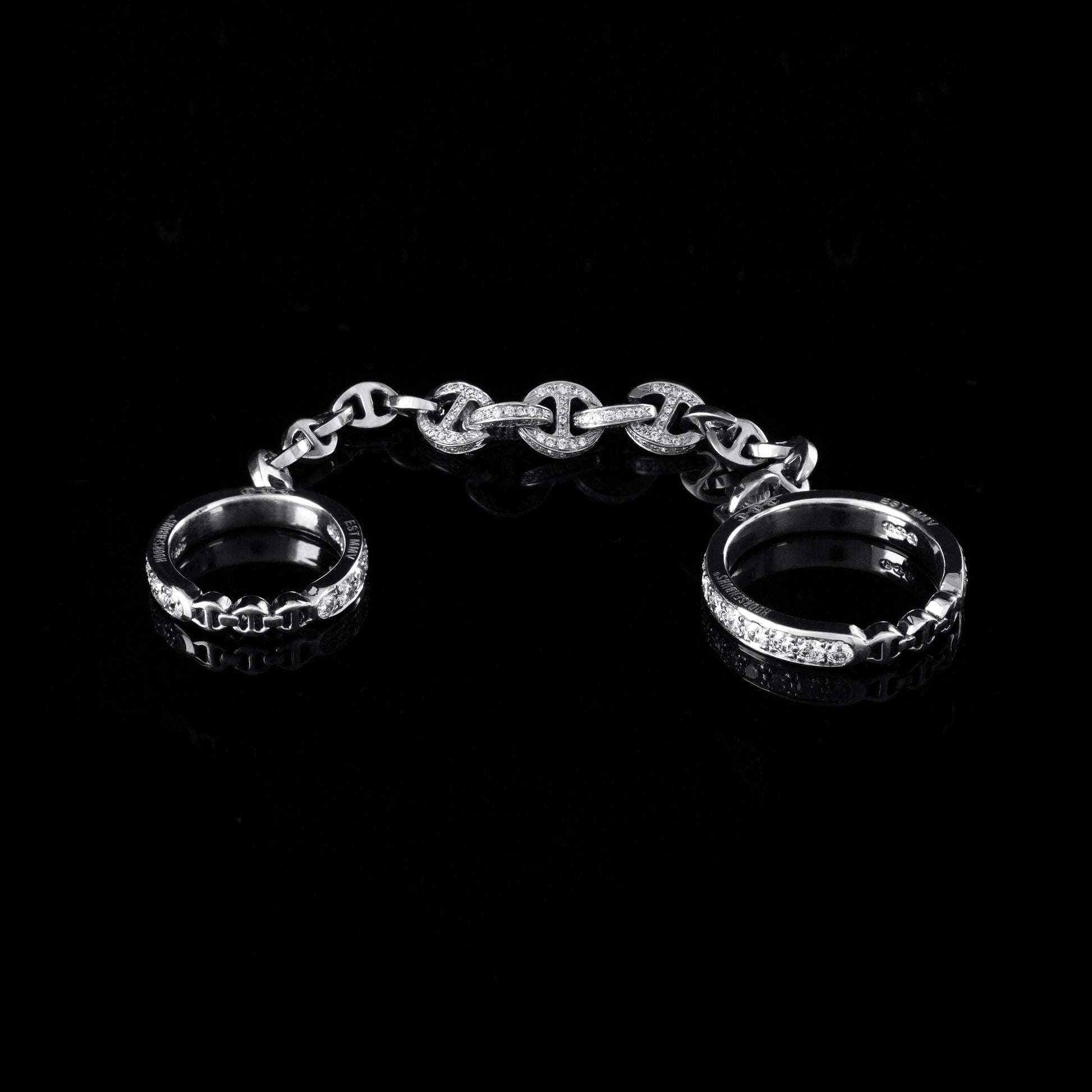 Two diamond rings joined by a 5MM length our classic 3MM Open-Link chain including 5 pavé links.
