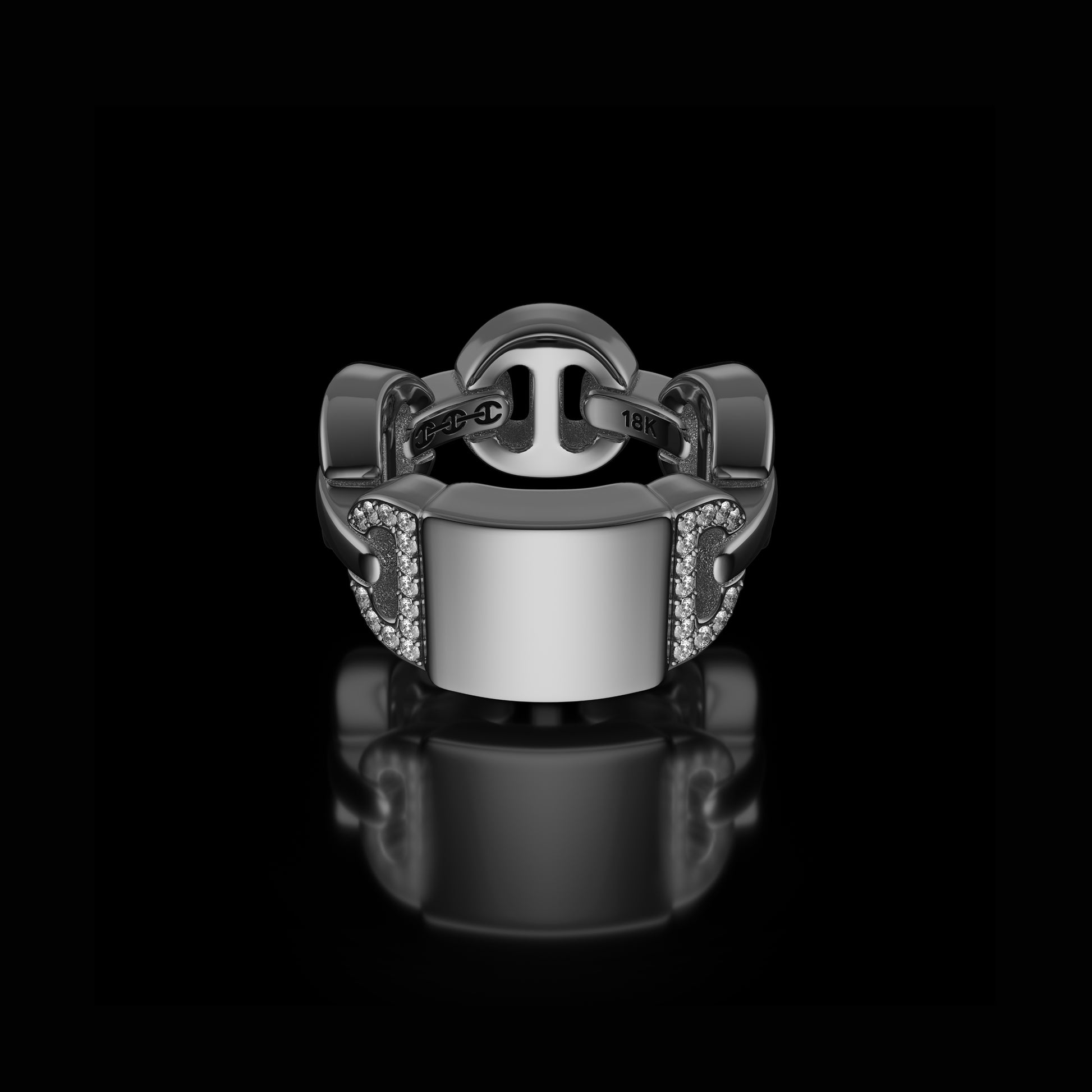 Our brute classic tri-link with monogram plate for bespoke engraving and accented with diamond pavé on either side of the plate.