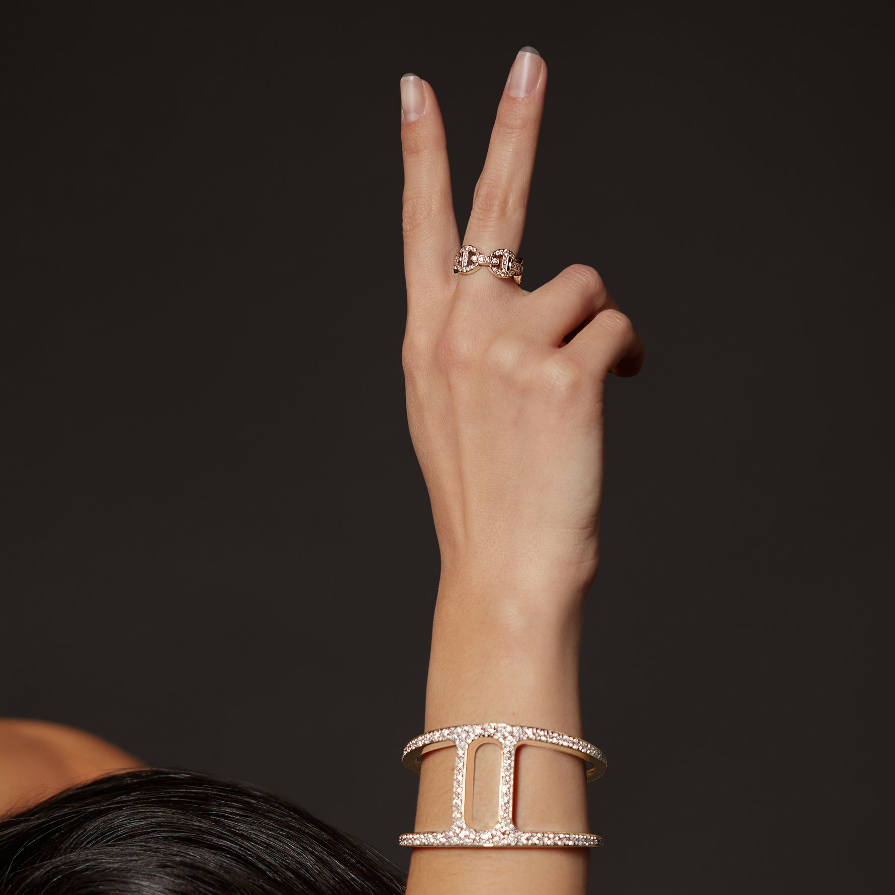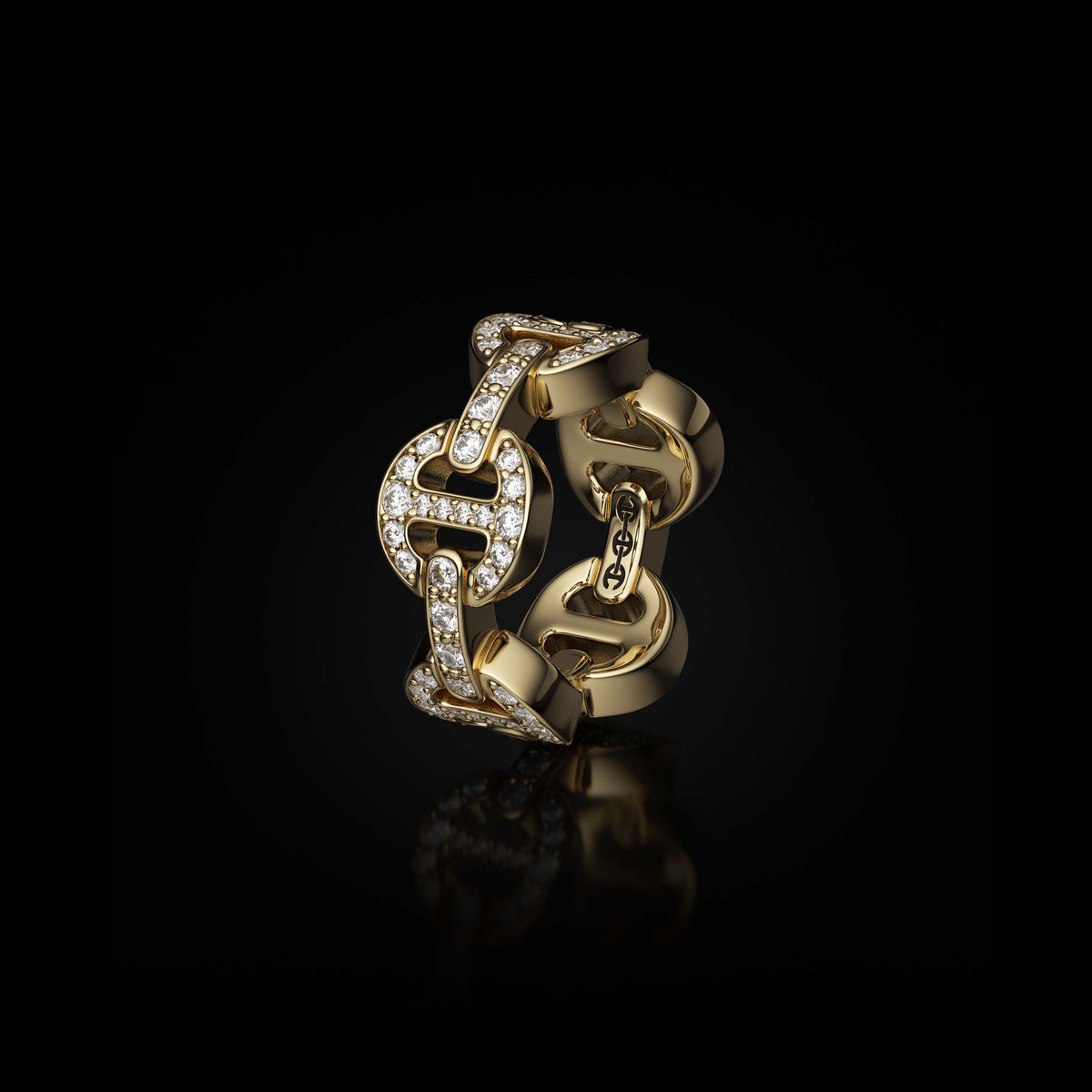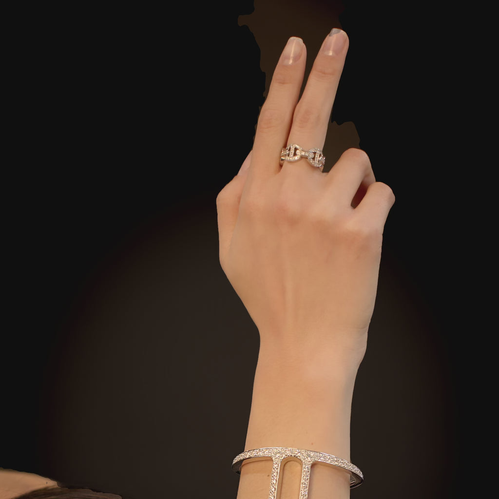 Unit price perA full paveé version of our leaner classic tri-link with accented with diamond bridges.