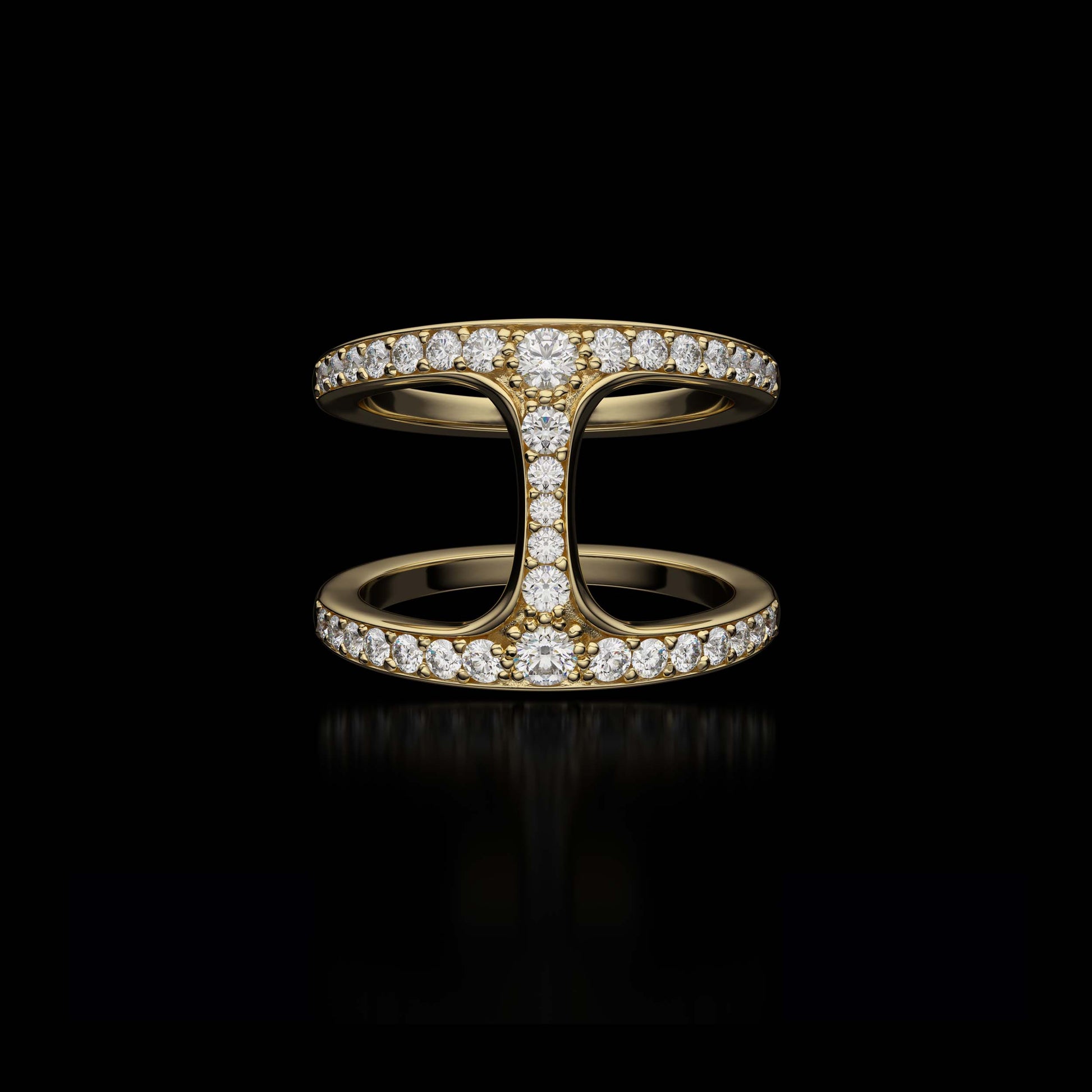 A single iconic link wrapped and elongated around the finger covered in round diamonds.