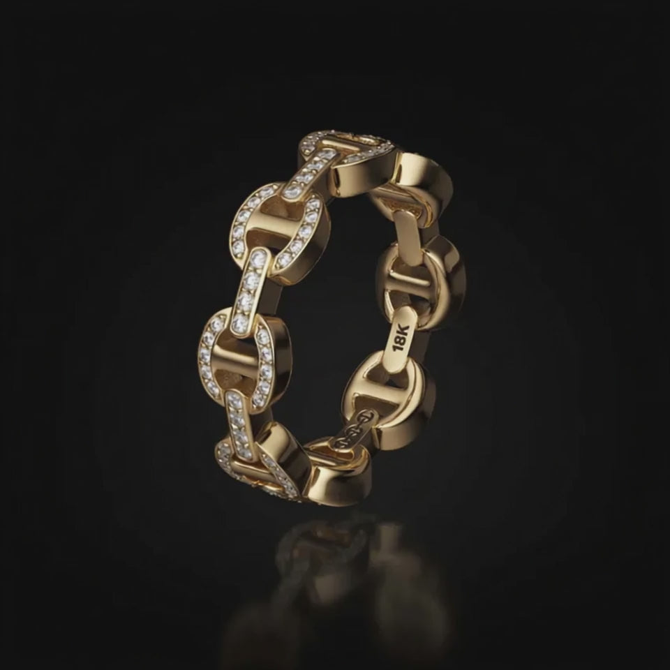 Our classic stackable tri-link band in more delicate proportions with full diamonds pavé.