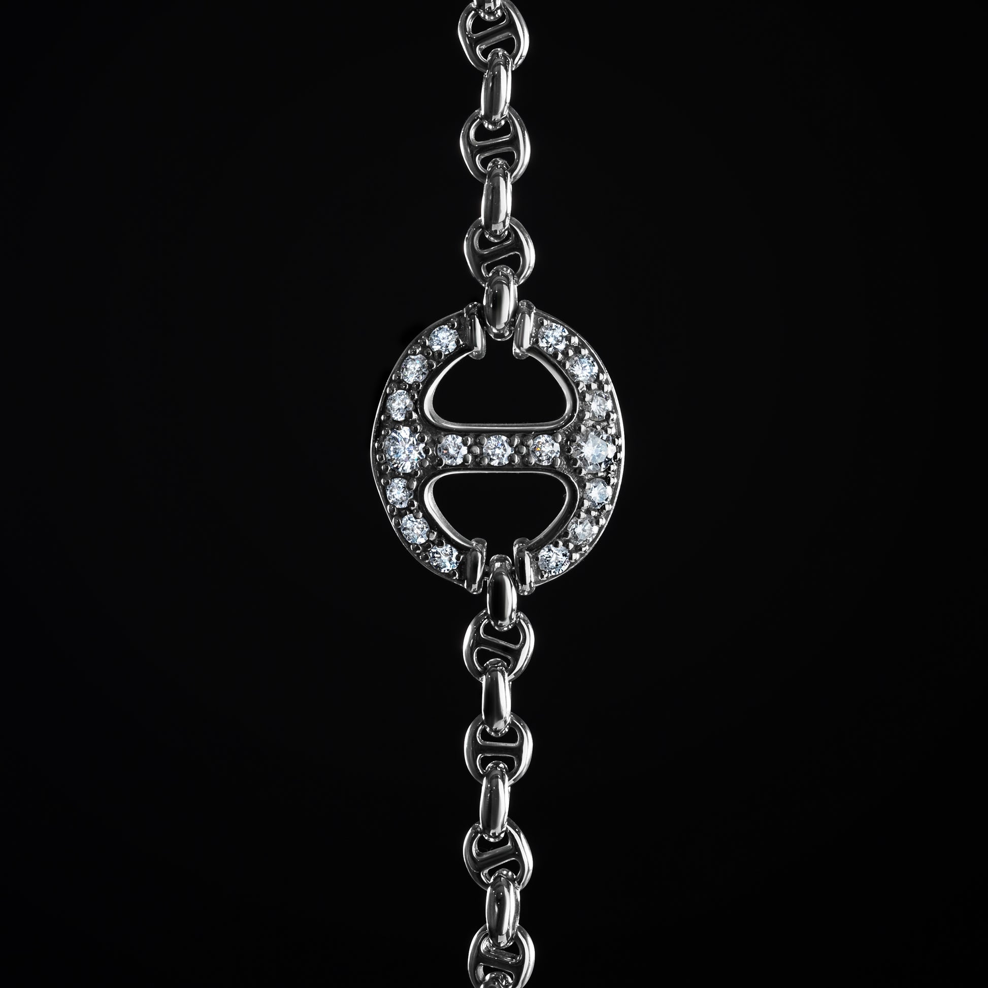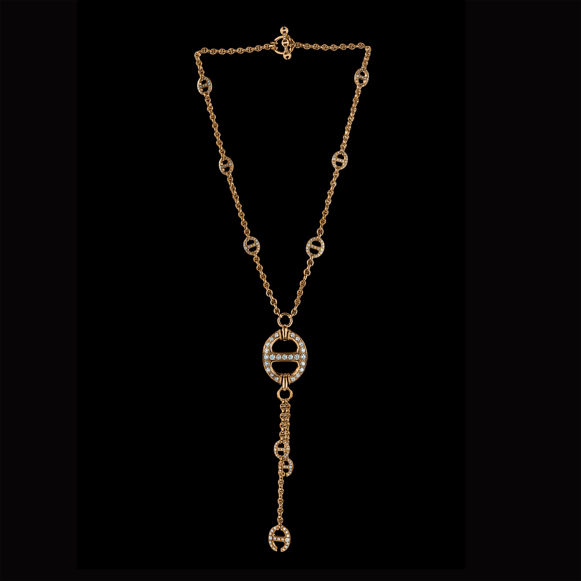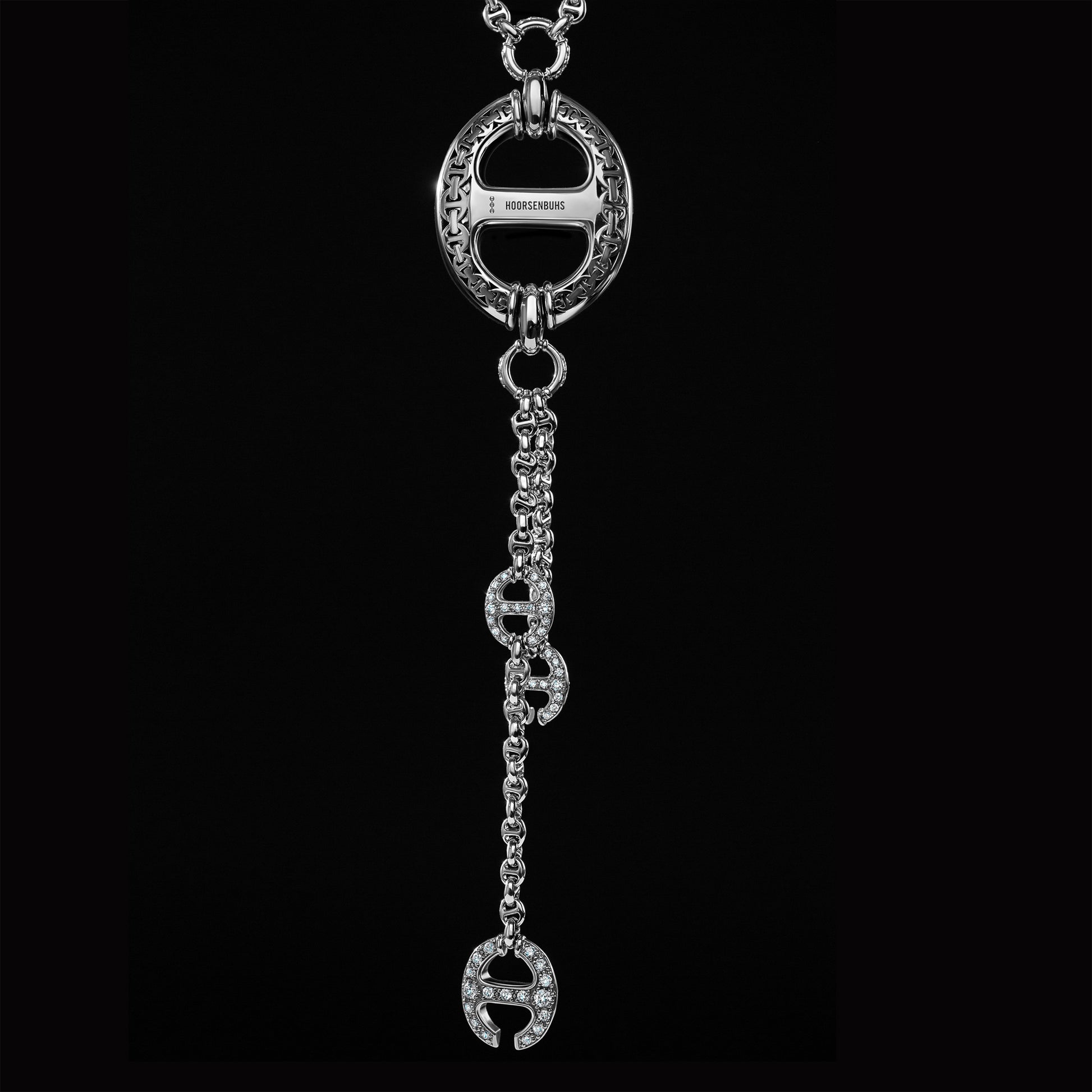 17" micro-link chain with a centered large single open-link with 2 asymmetrically draped micro-links with diamonds and (6) 10mm diamond station necklace.