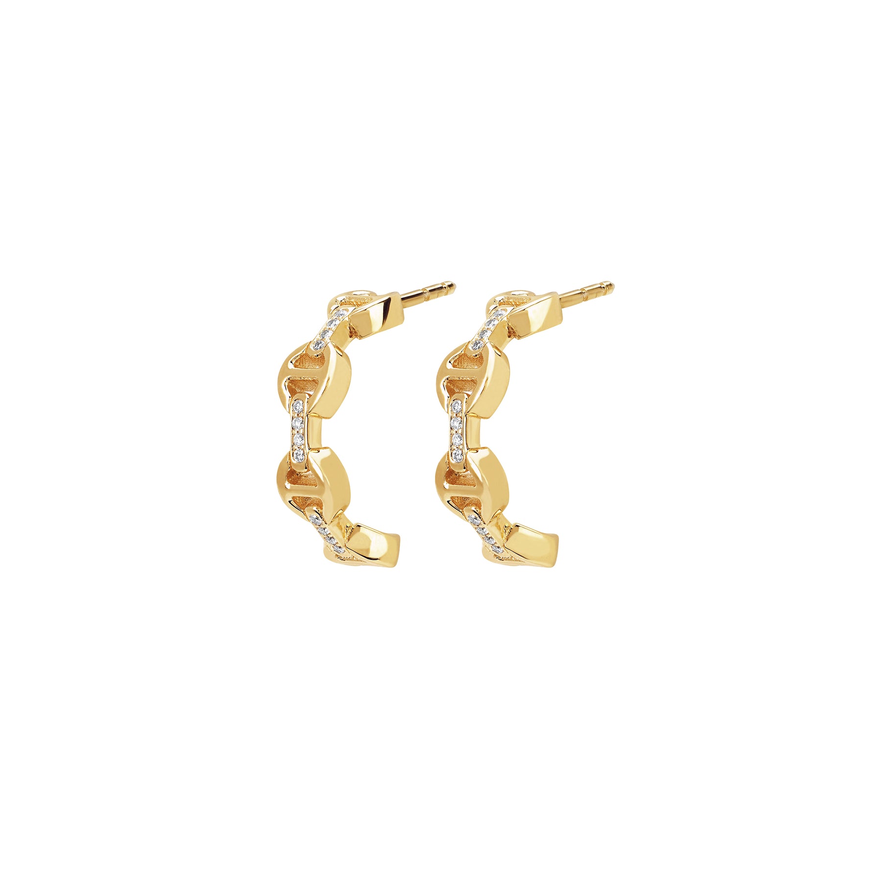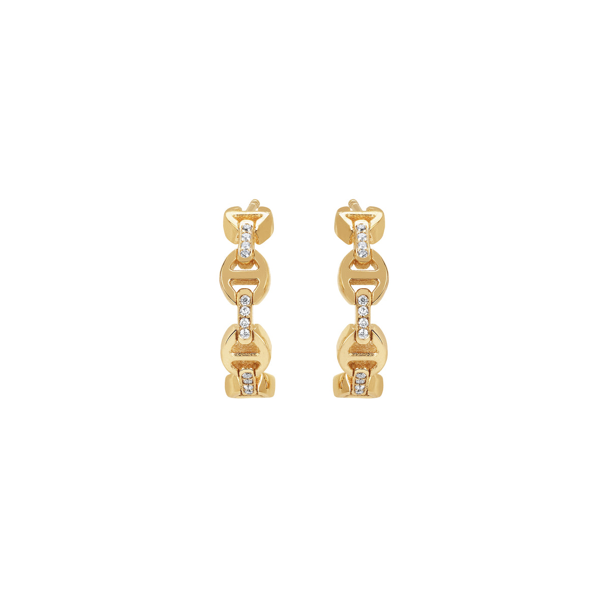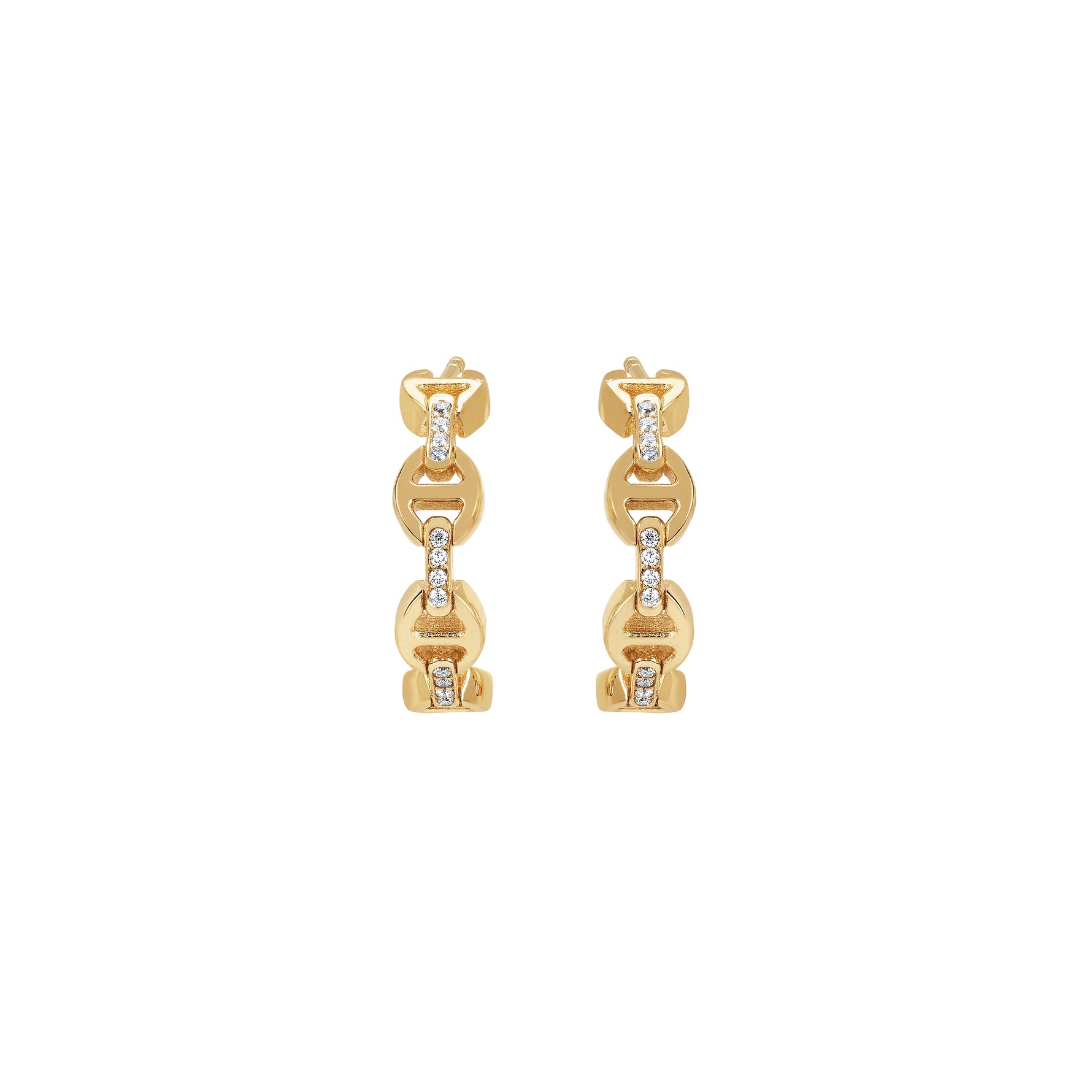 Unit price perA micro crescent shaped semi-circle earring featuring our iconic anchor chain links in 18k gold with diamond accents on the bridges.