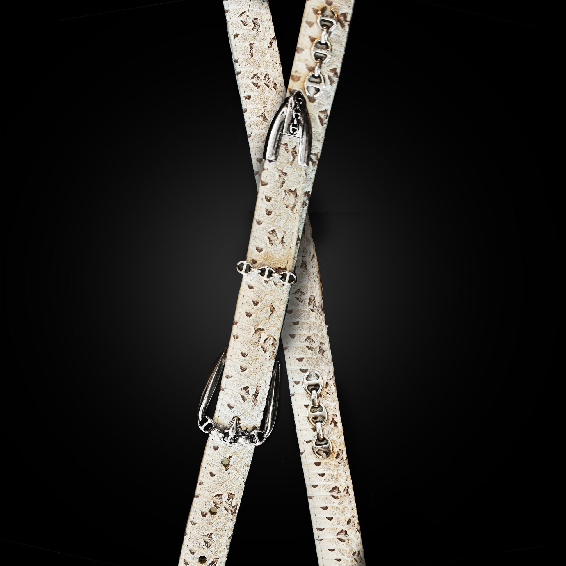 Natural Snakeskin Western Belt crafted from natural snakeskin and cowhide. Embellished with .925 sterling silver hardware including a buckle, keeper, tip, and Hoorsenbuhs' signature tri-link motif throughout. Ethically made in Los Angeles.