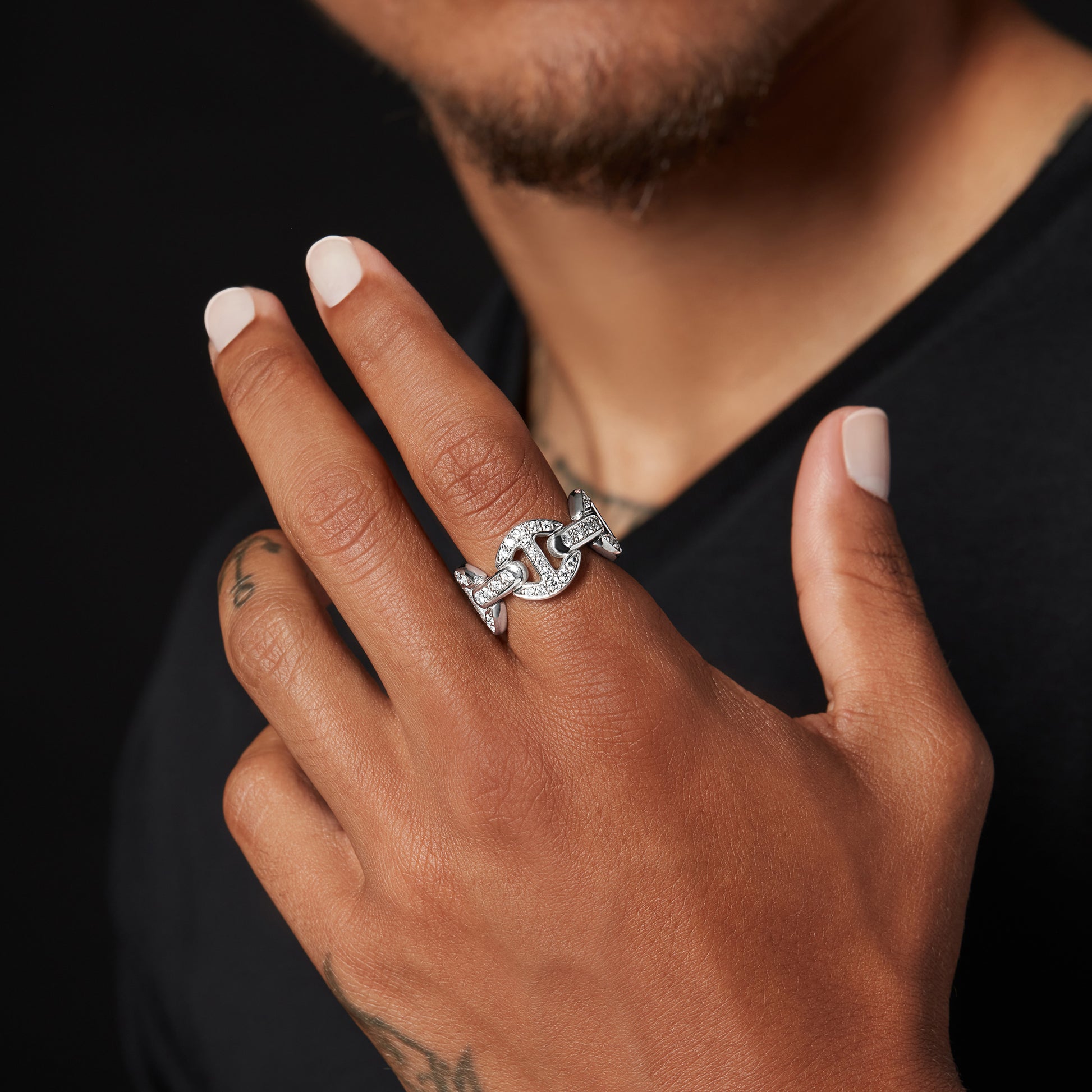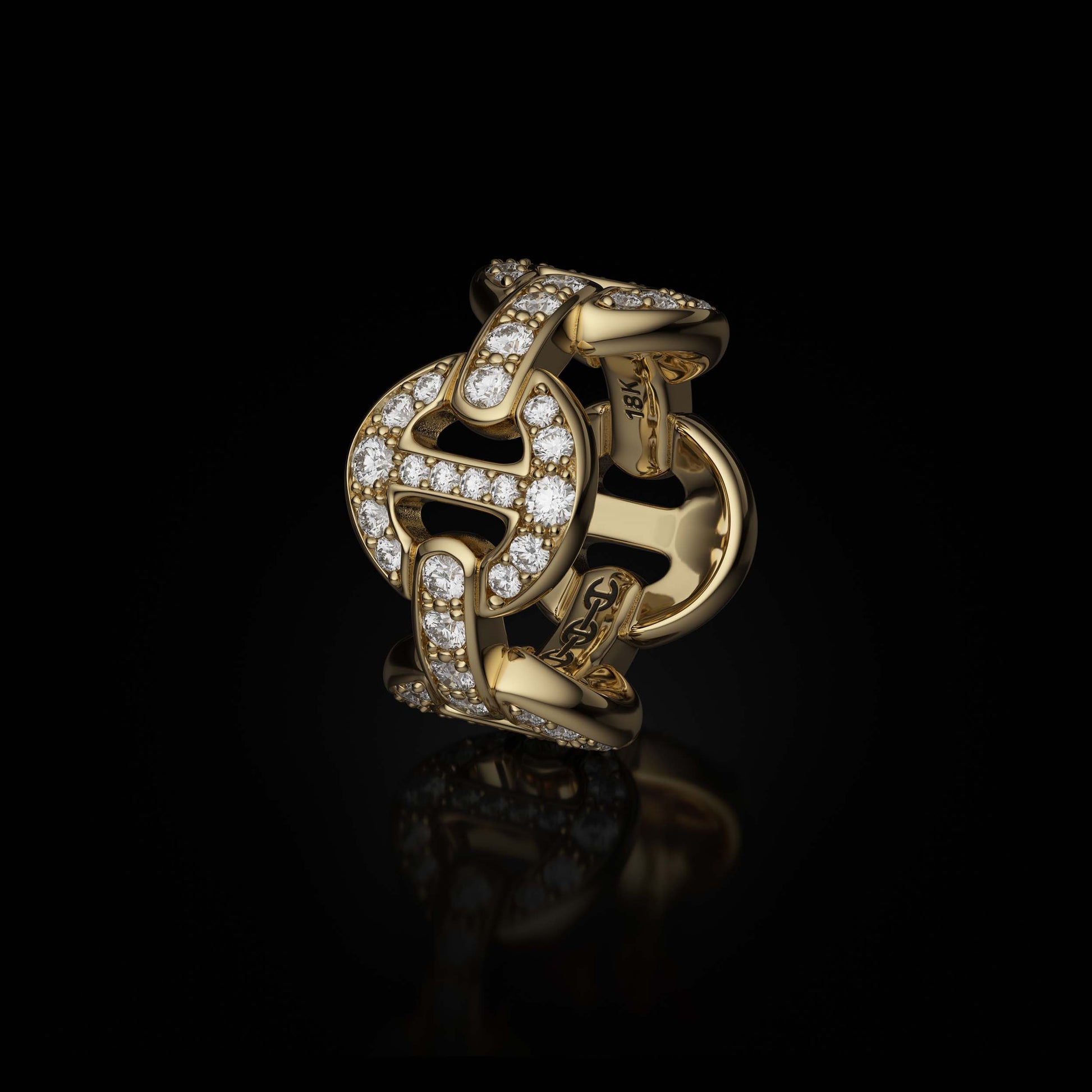 A full diamond pavé version of the largest of the link series with 4 substantial links.