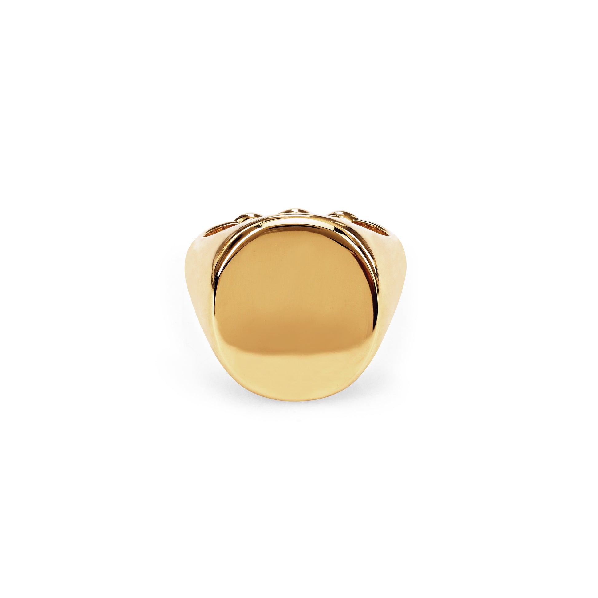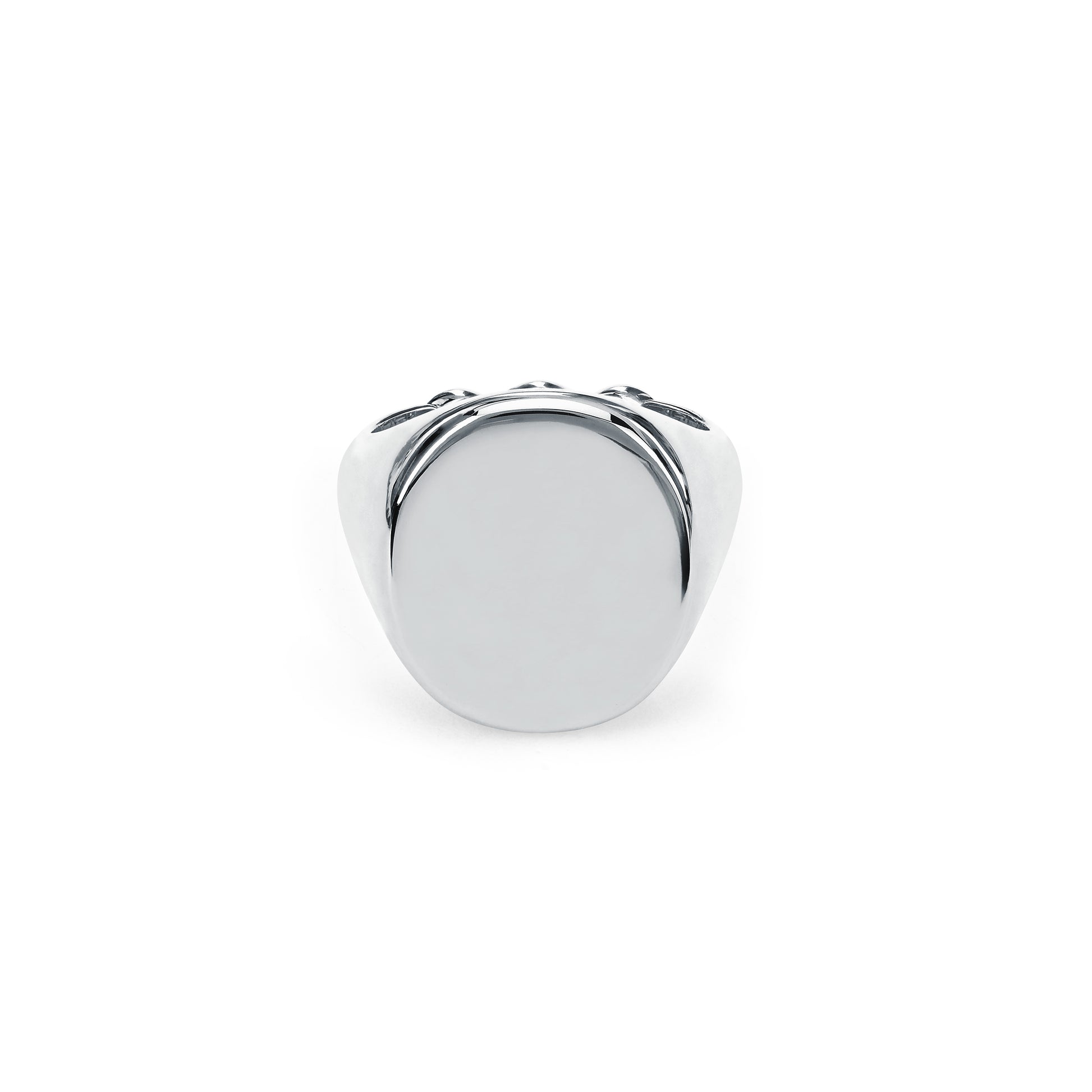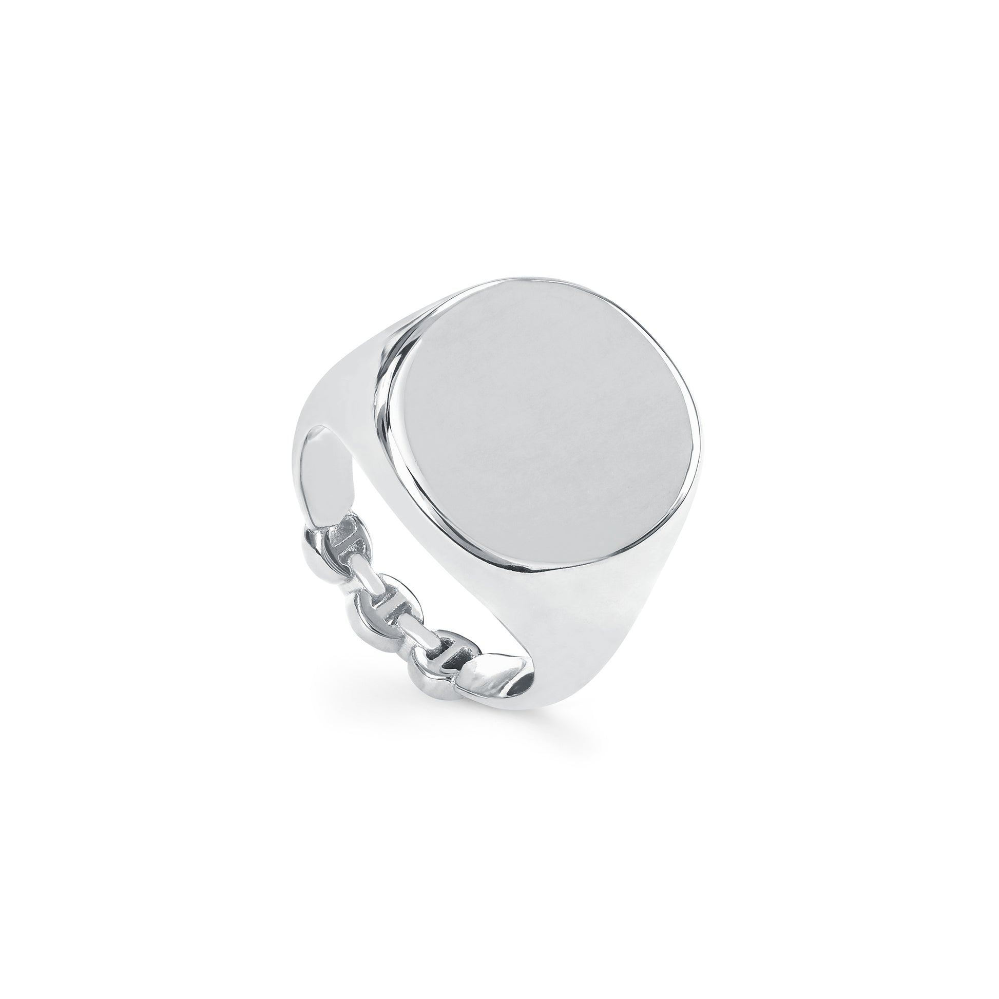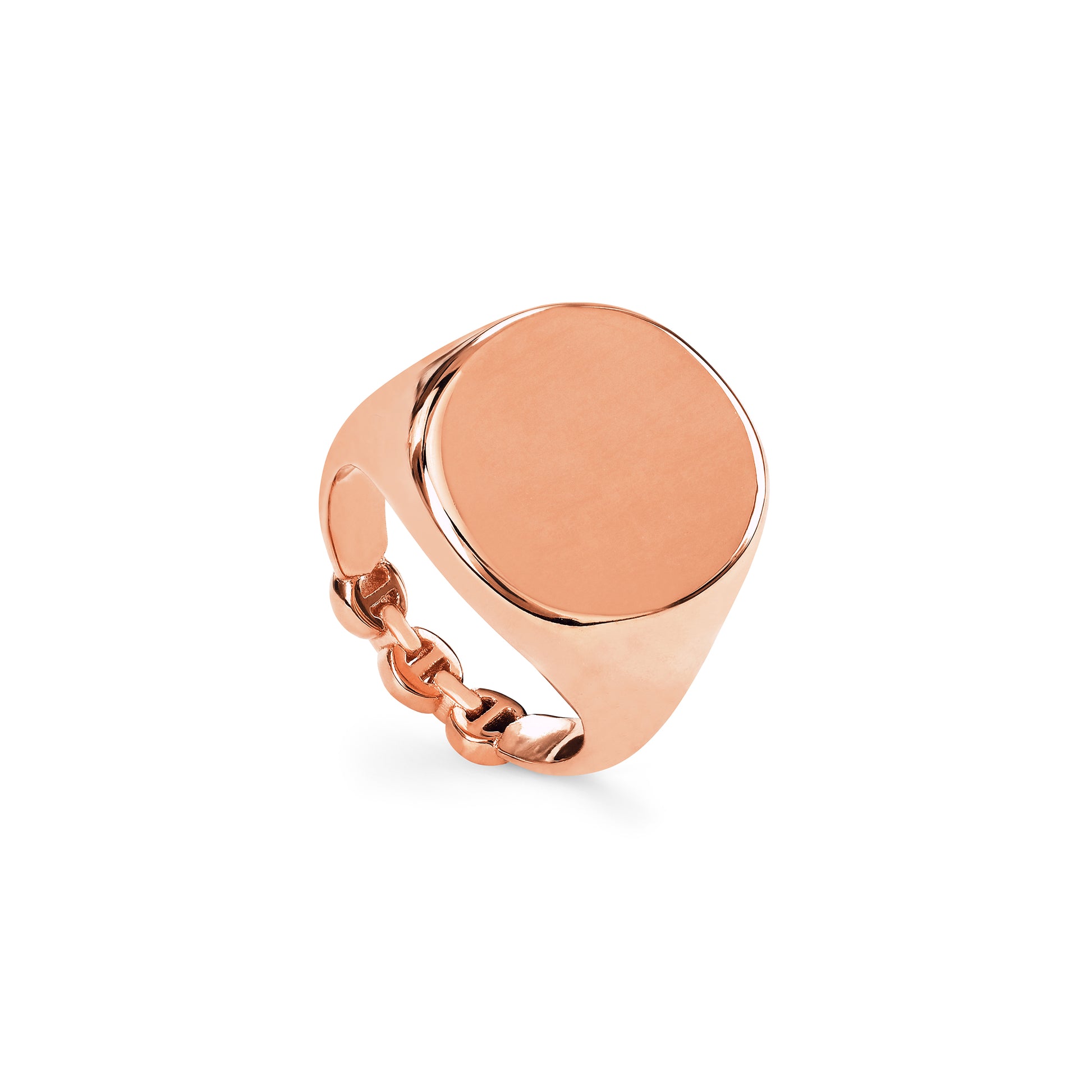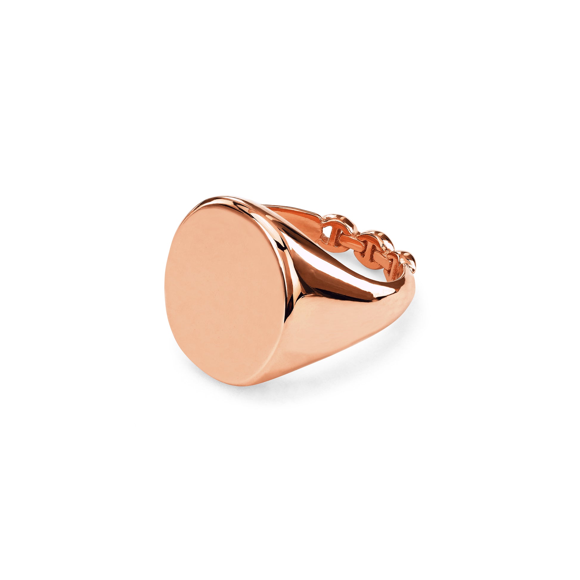 Classic signet ring for engraving with a tri-link detail at the bottom of the band.