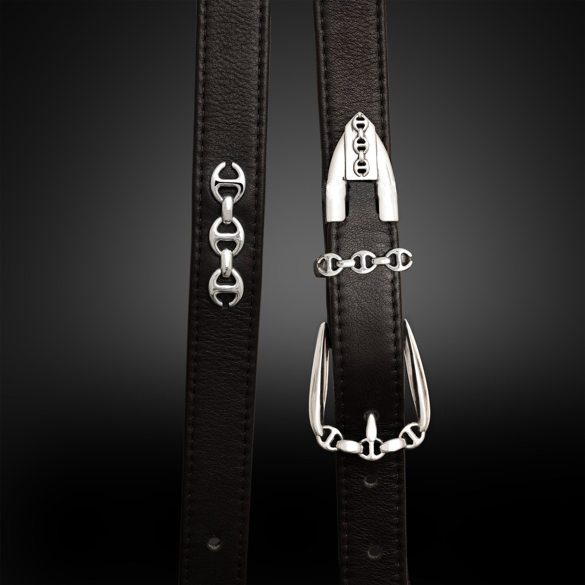 Smooth Leather Western Belt made from cowhide and embellished with .925 sterling silver hardware including a buckle, keeper, tip, and Hoorsenbuhs' signature tri-link motif throughout. Ethically made in Los Angeles.